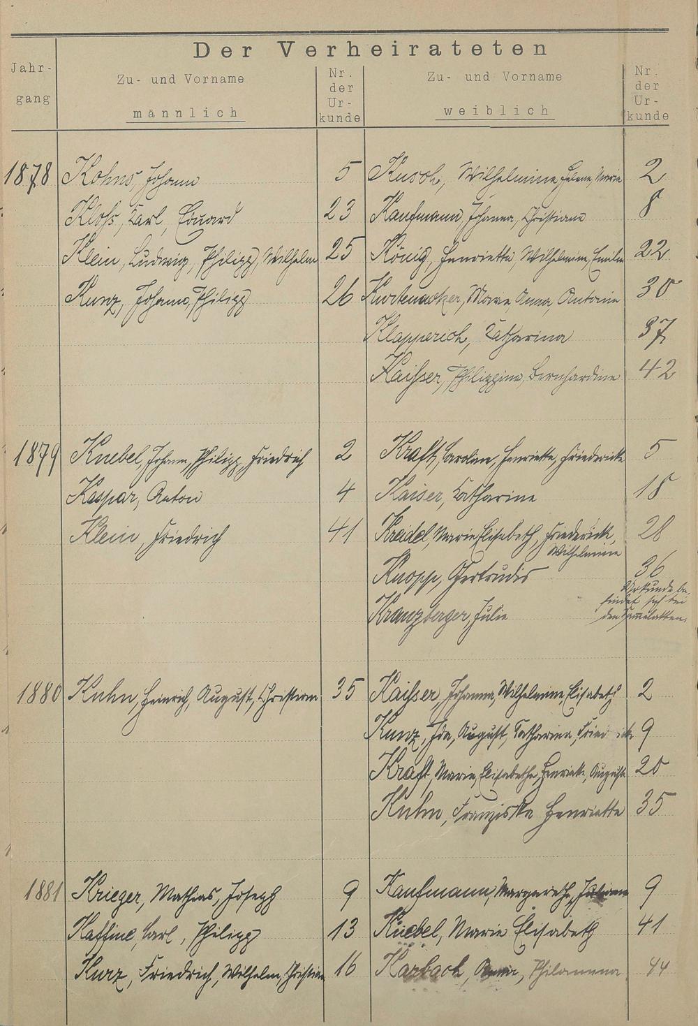 1559: Register A - Z zum Heiratsregister 1874-1900