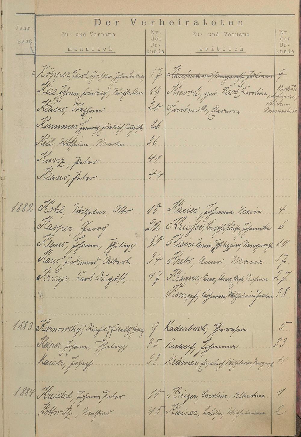 1559: Register A - Z zum Heiratsregister 1874-1900