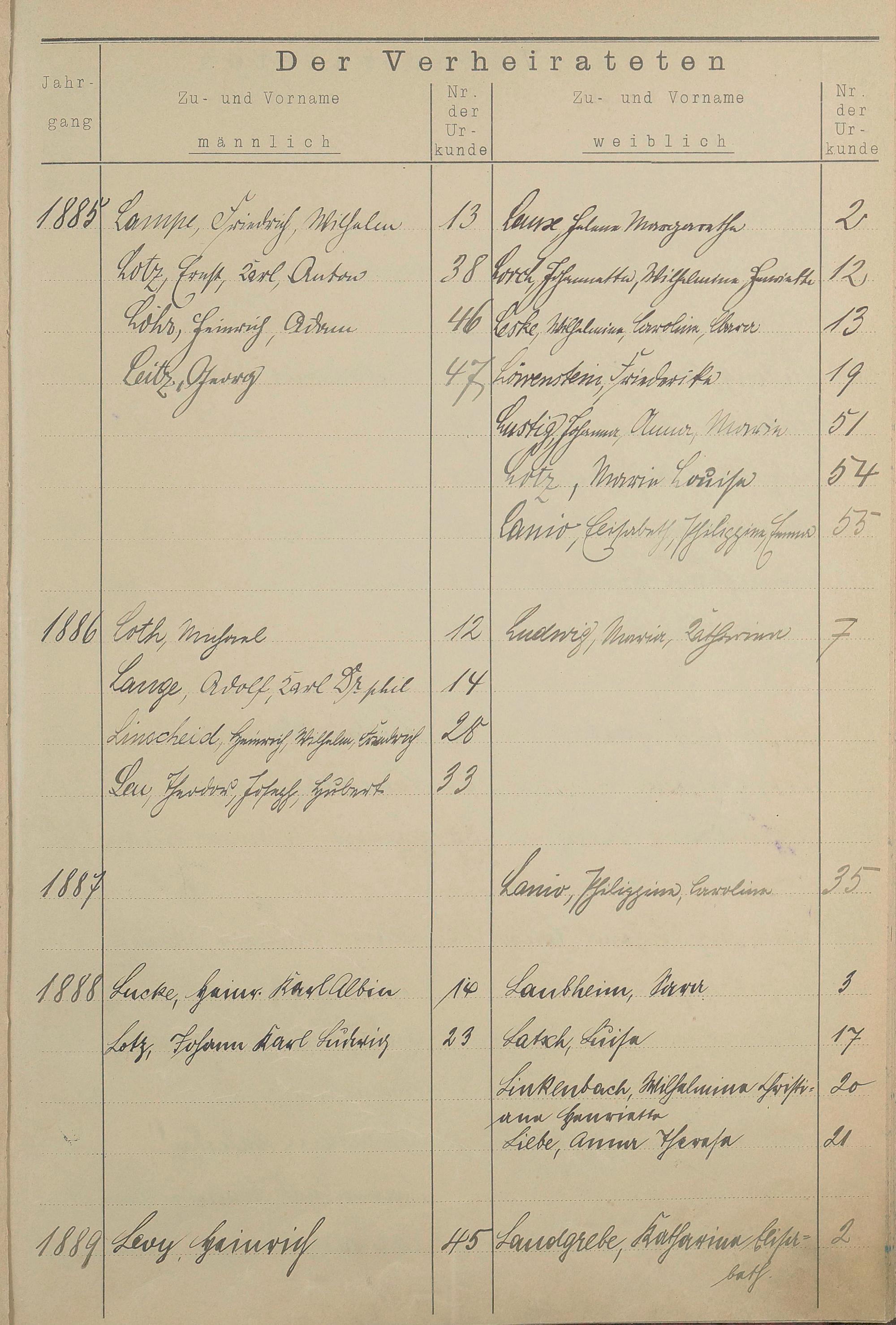 1559: Register A - Z zum Heiratsregister 1874-1900