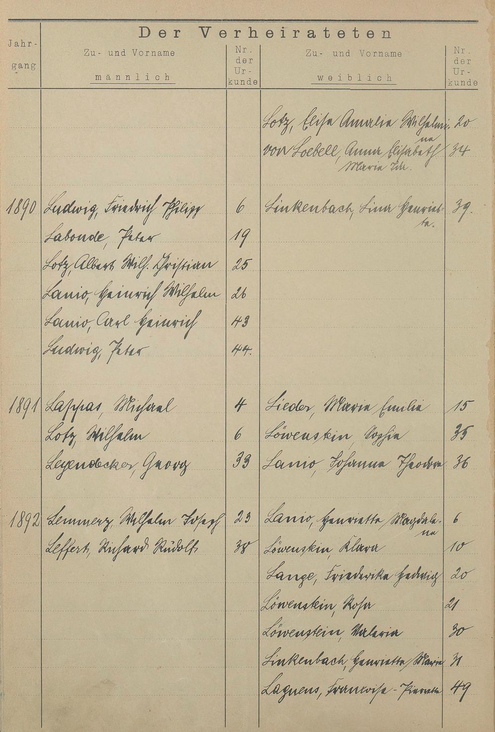 Register A - Z zum Heiratsregister 1874-1900