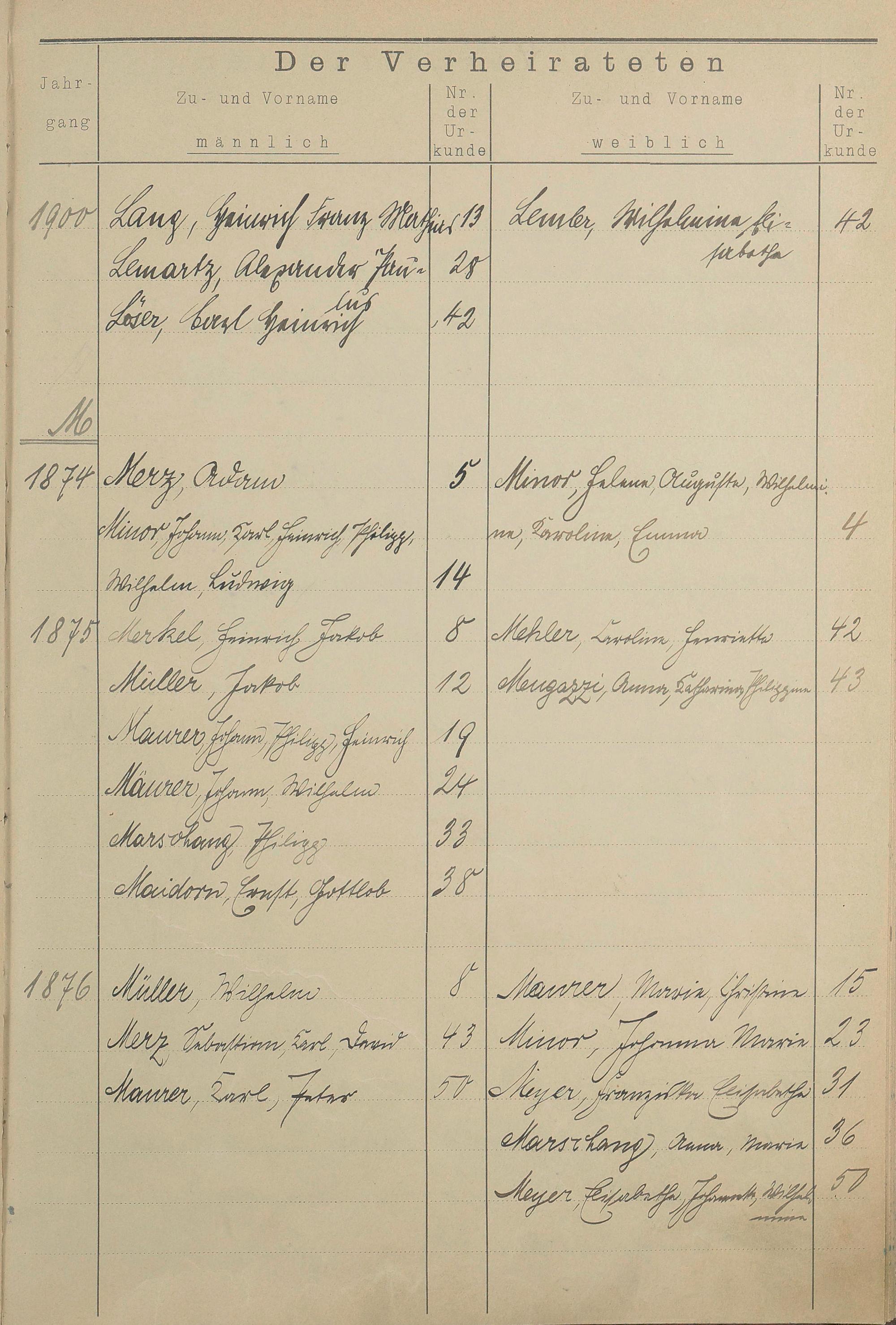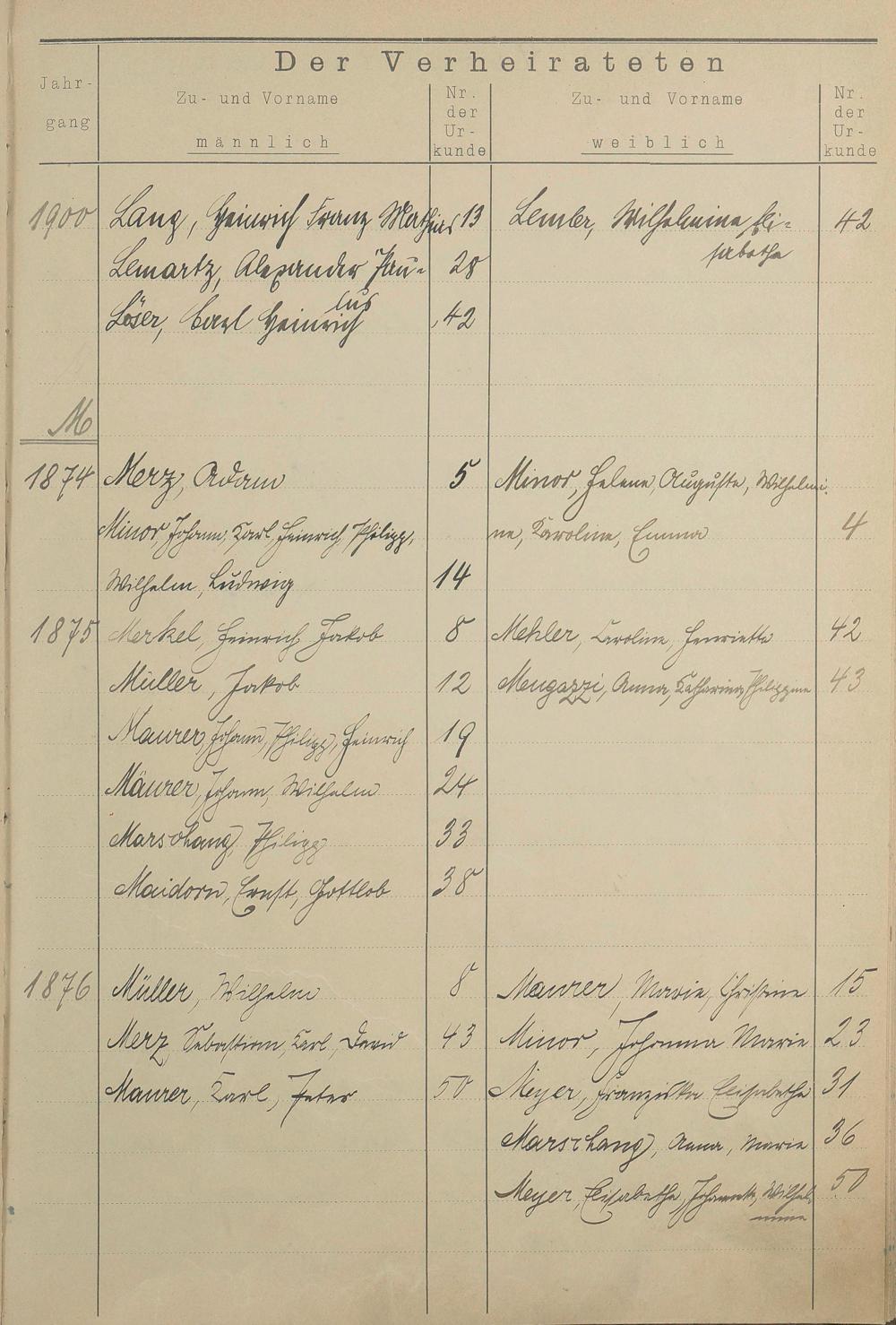 Register A - Z zum Heiratsregister 1874-1900