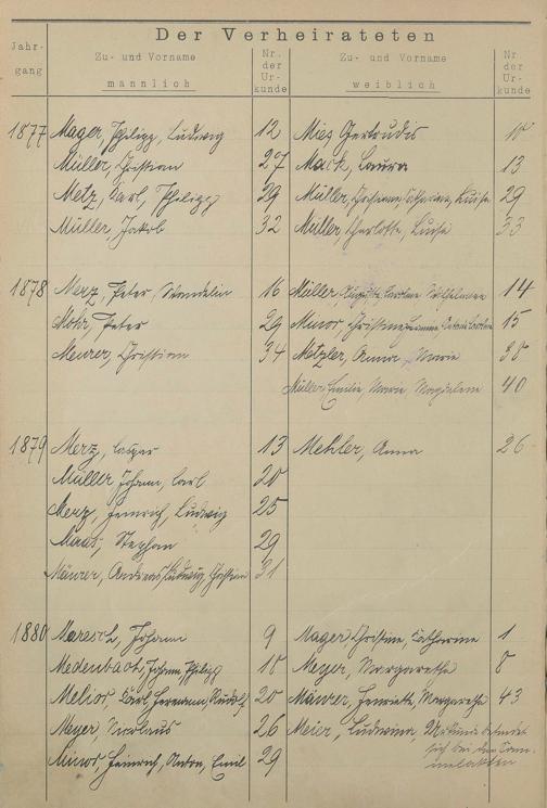 Register A - Z zum Heiratsregister 1874-1900