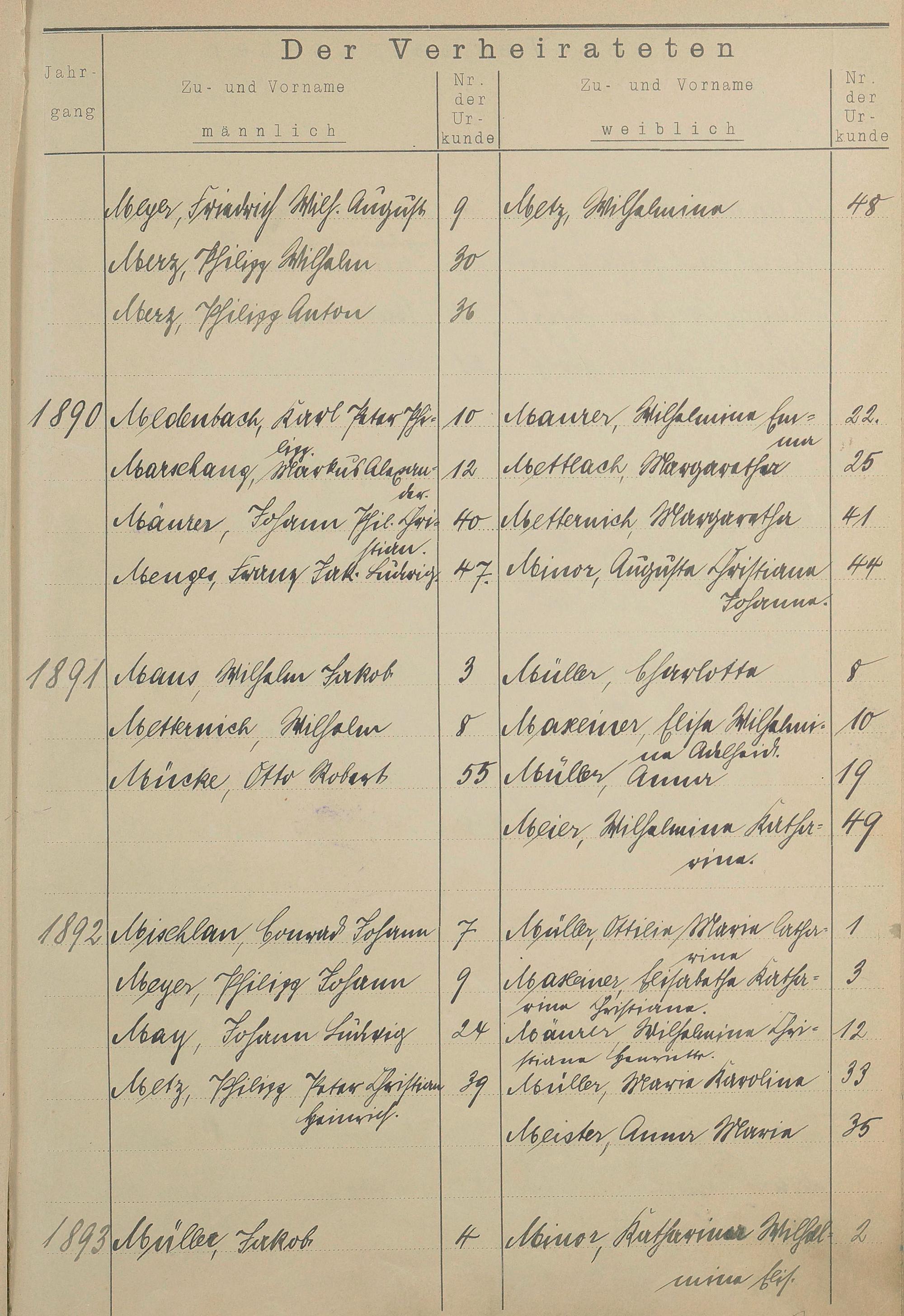 Register A - Z zum Heiratsregister 1874-1900