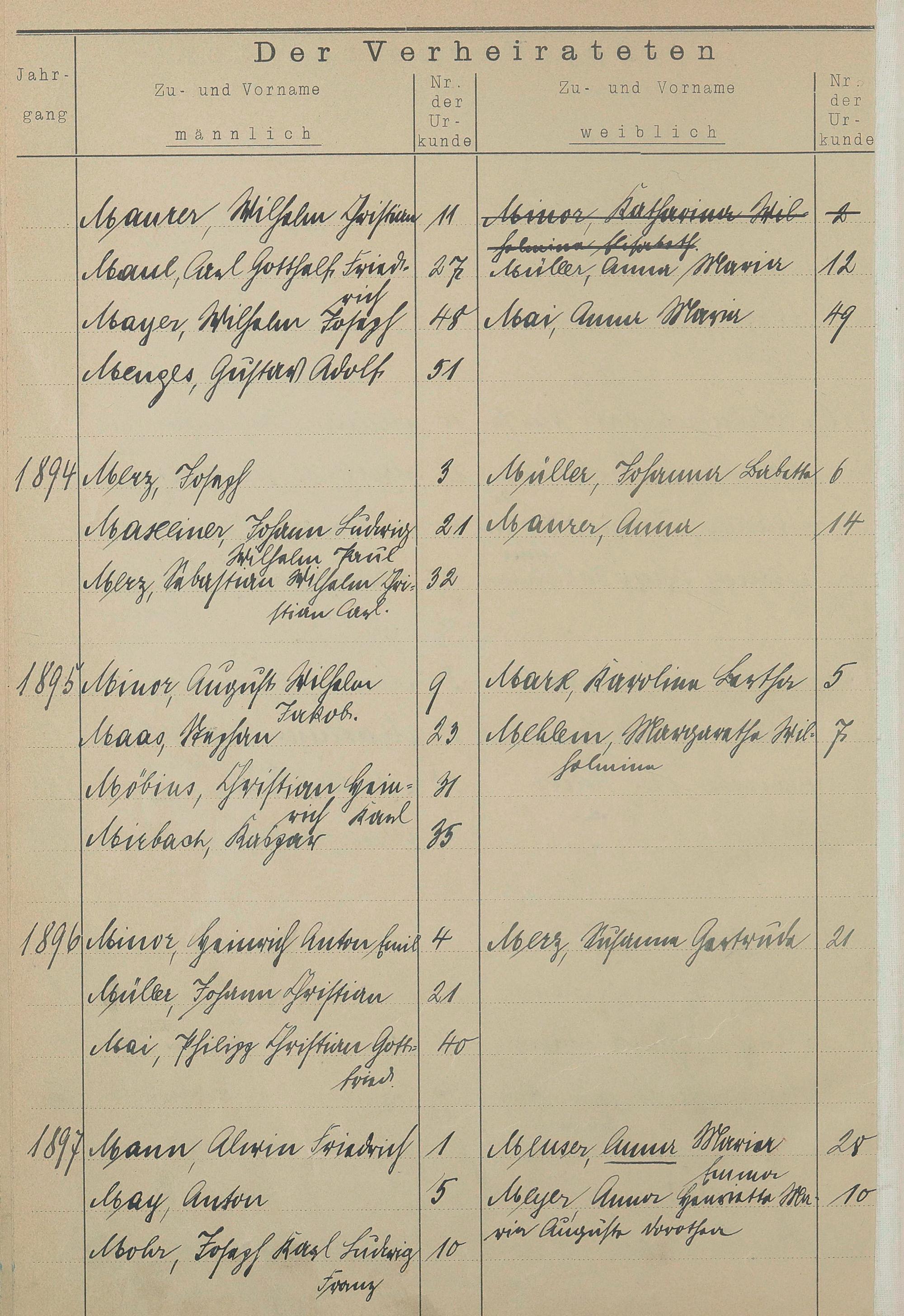 Register A - Z zum Heiratsregister 1874-1900