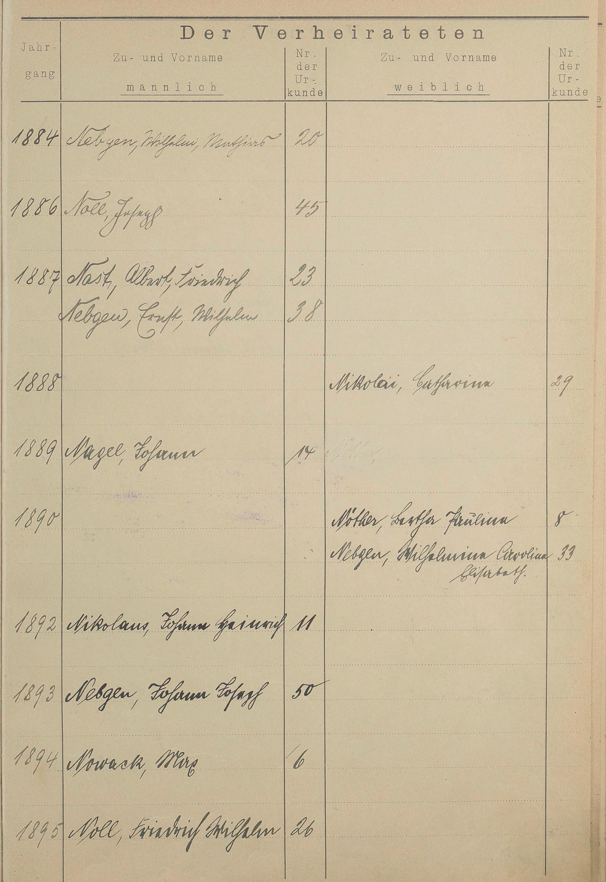 Register A - Z zum Heiratsregister 1874-1900
