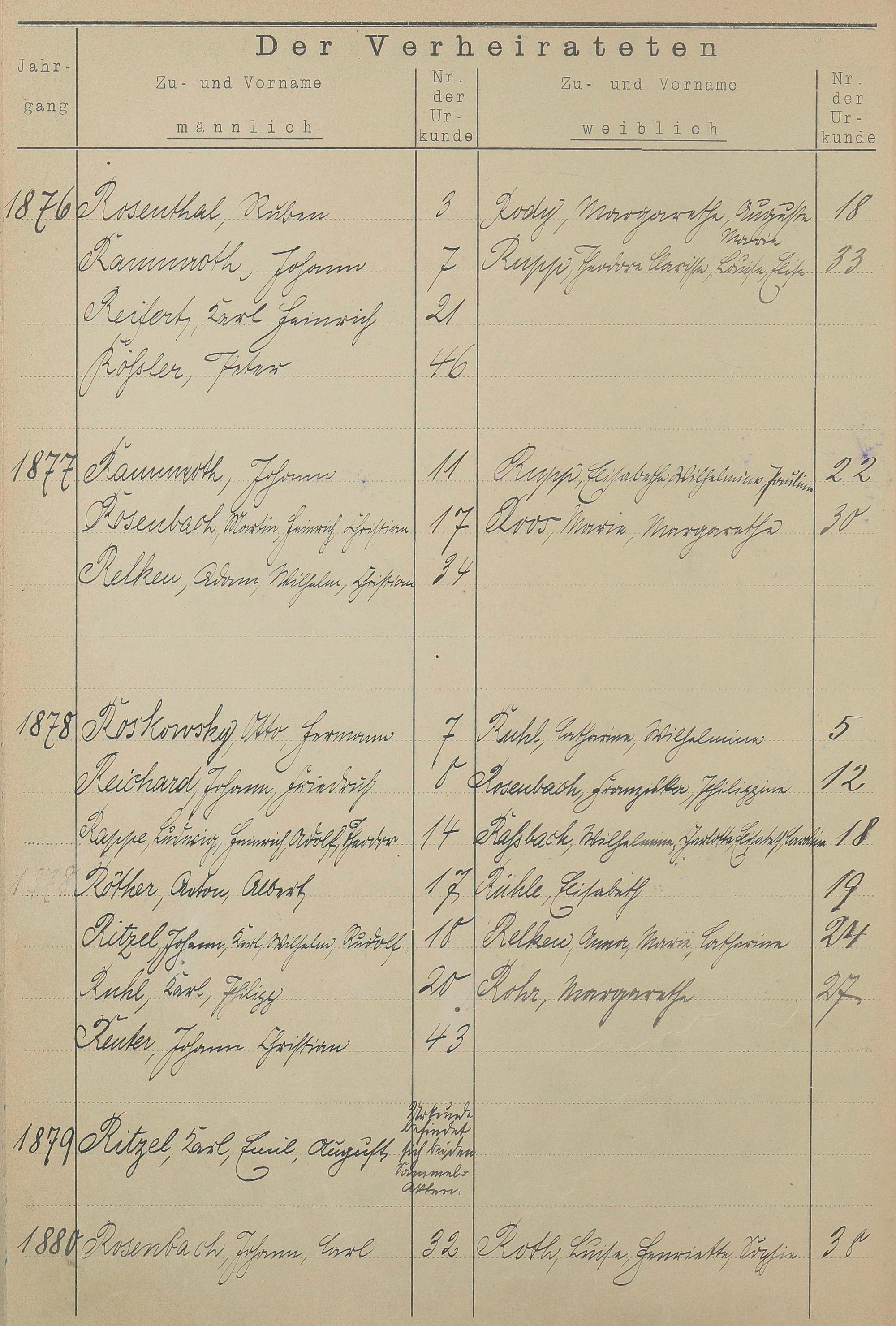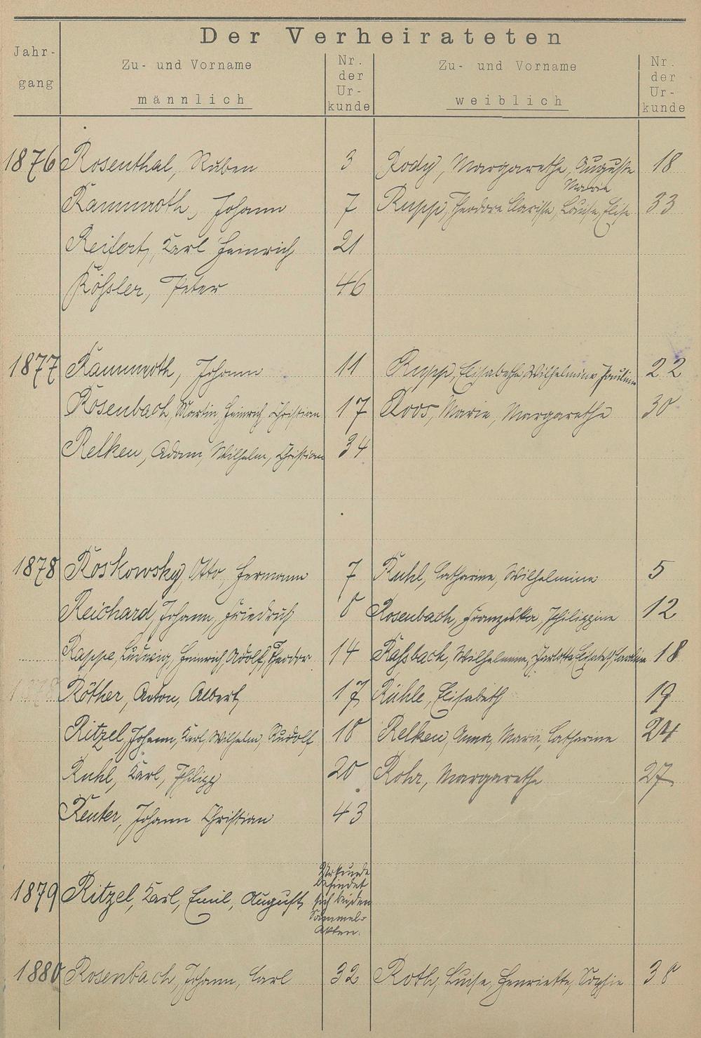 Register A - Z zum Heiratsregister 1874-1900