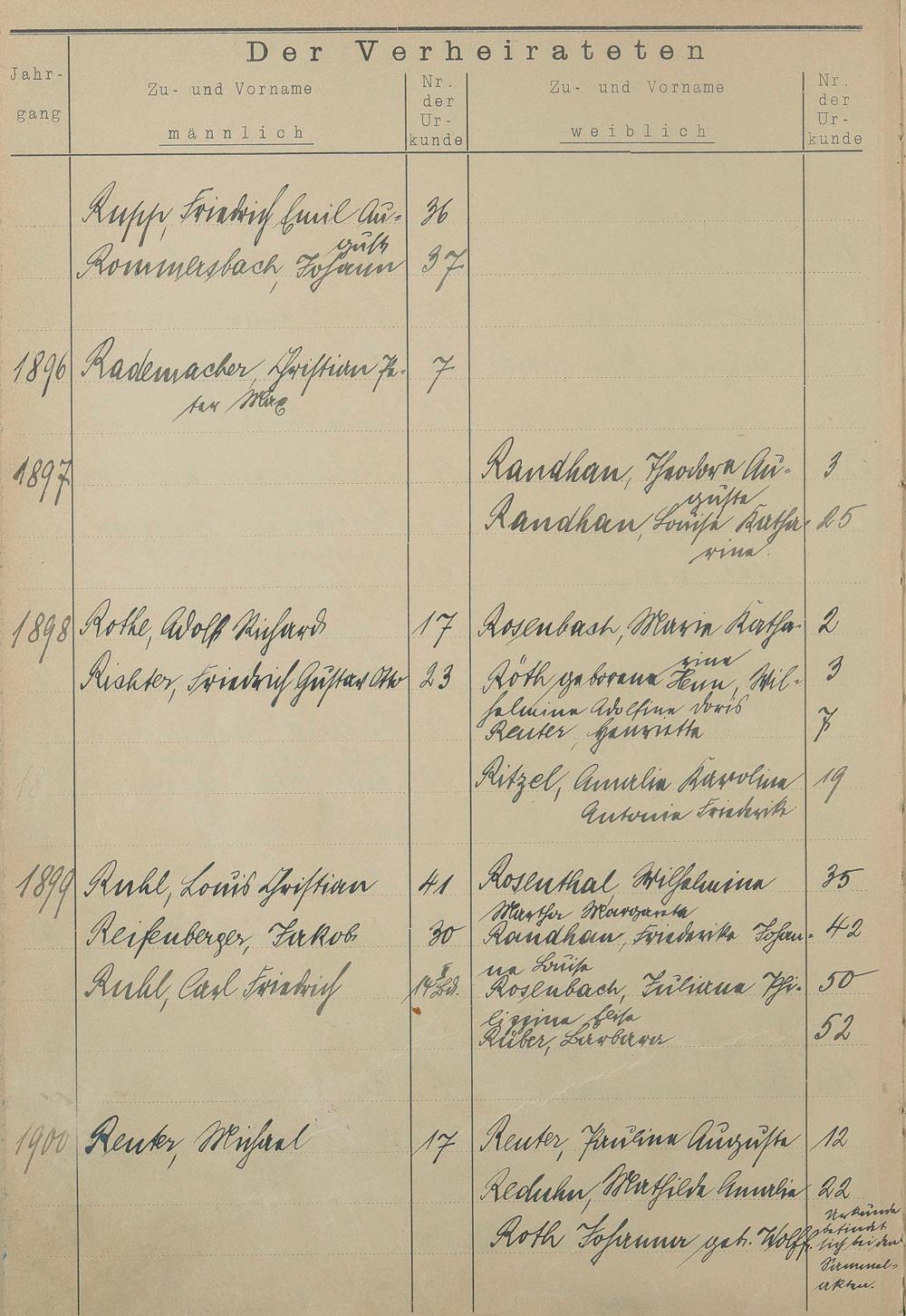 Register A - Z zum Heiratsregister 1874-1900