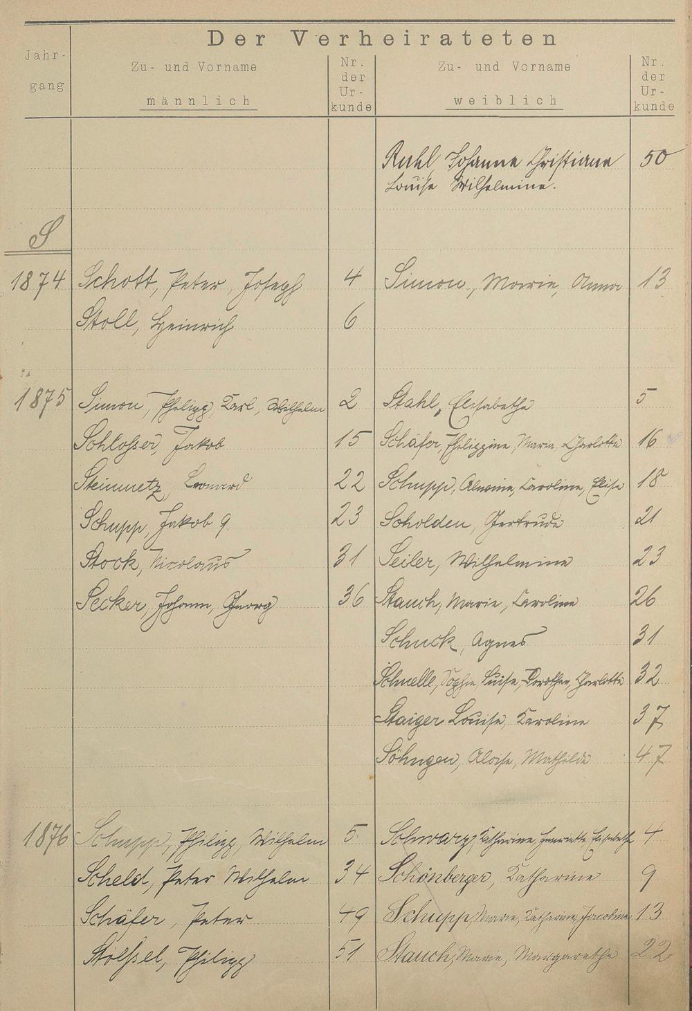 Register A - Z zum Heiratsregister 1874-1900