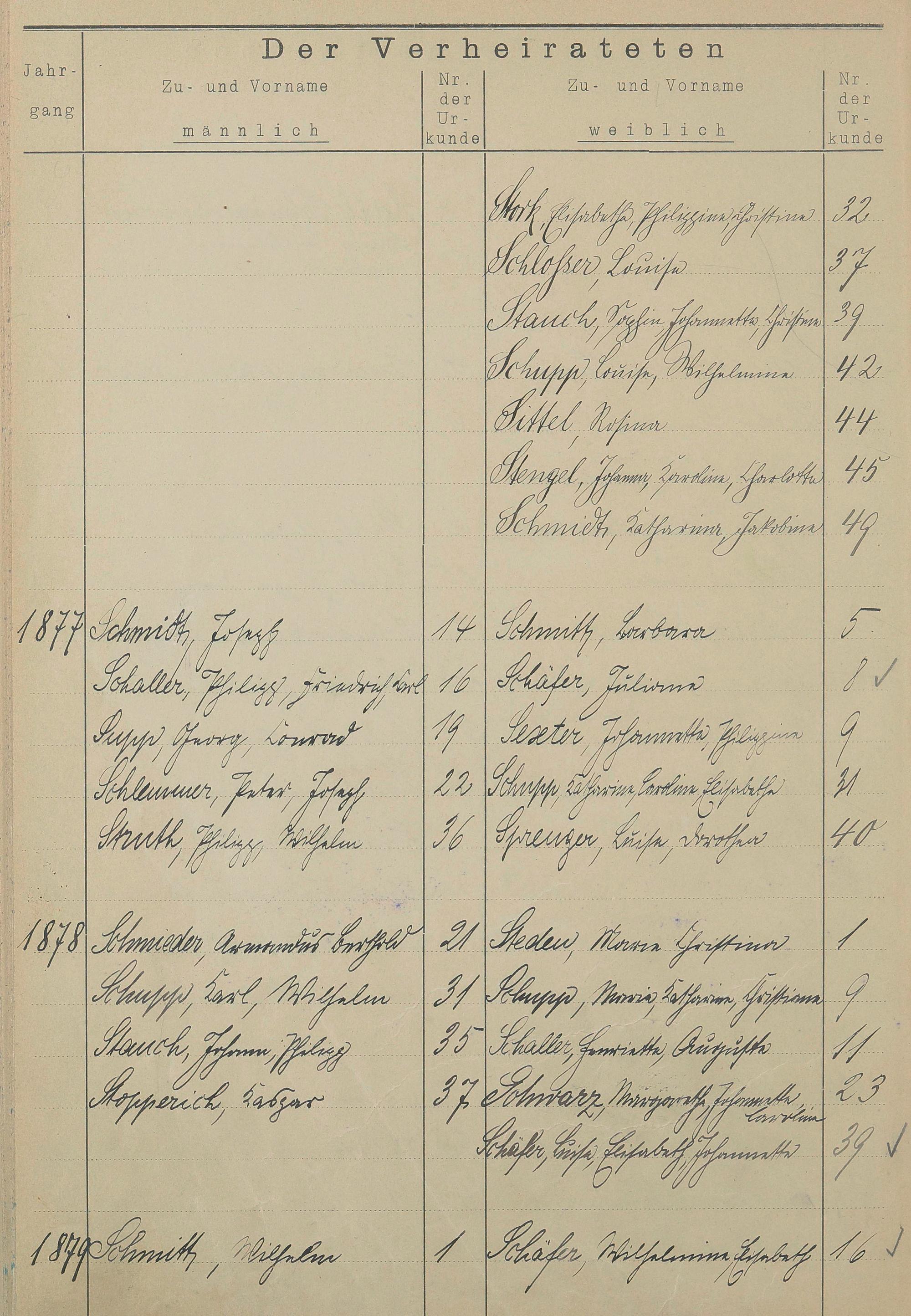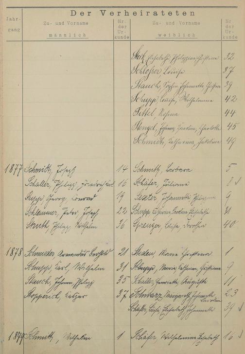 Register A - Z zum Heiratsregister 1874-1900