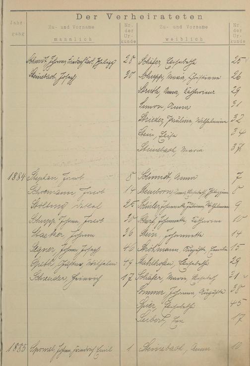 Register A - Z zum Heiratsregister 1874-1900