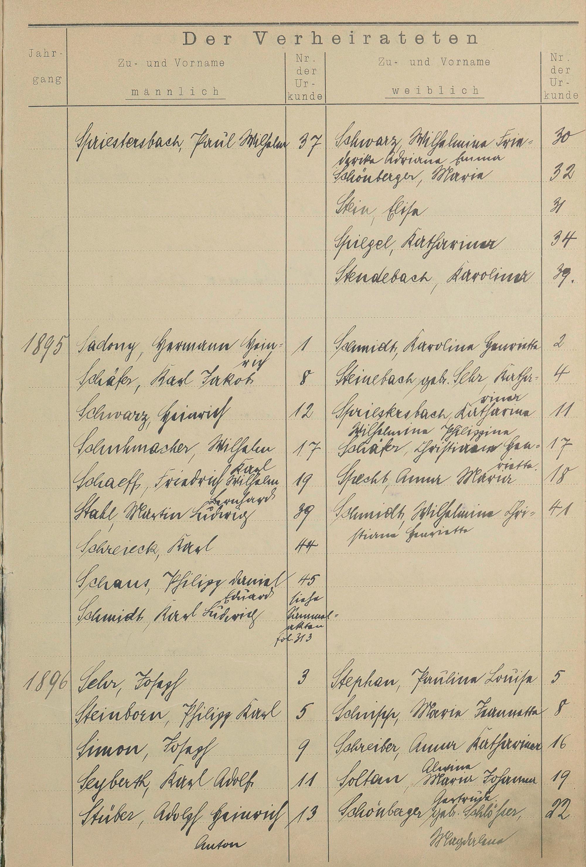 Register A - Z zum Heiratsregister 1874-1900