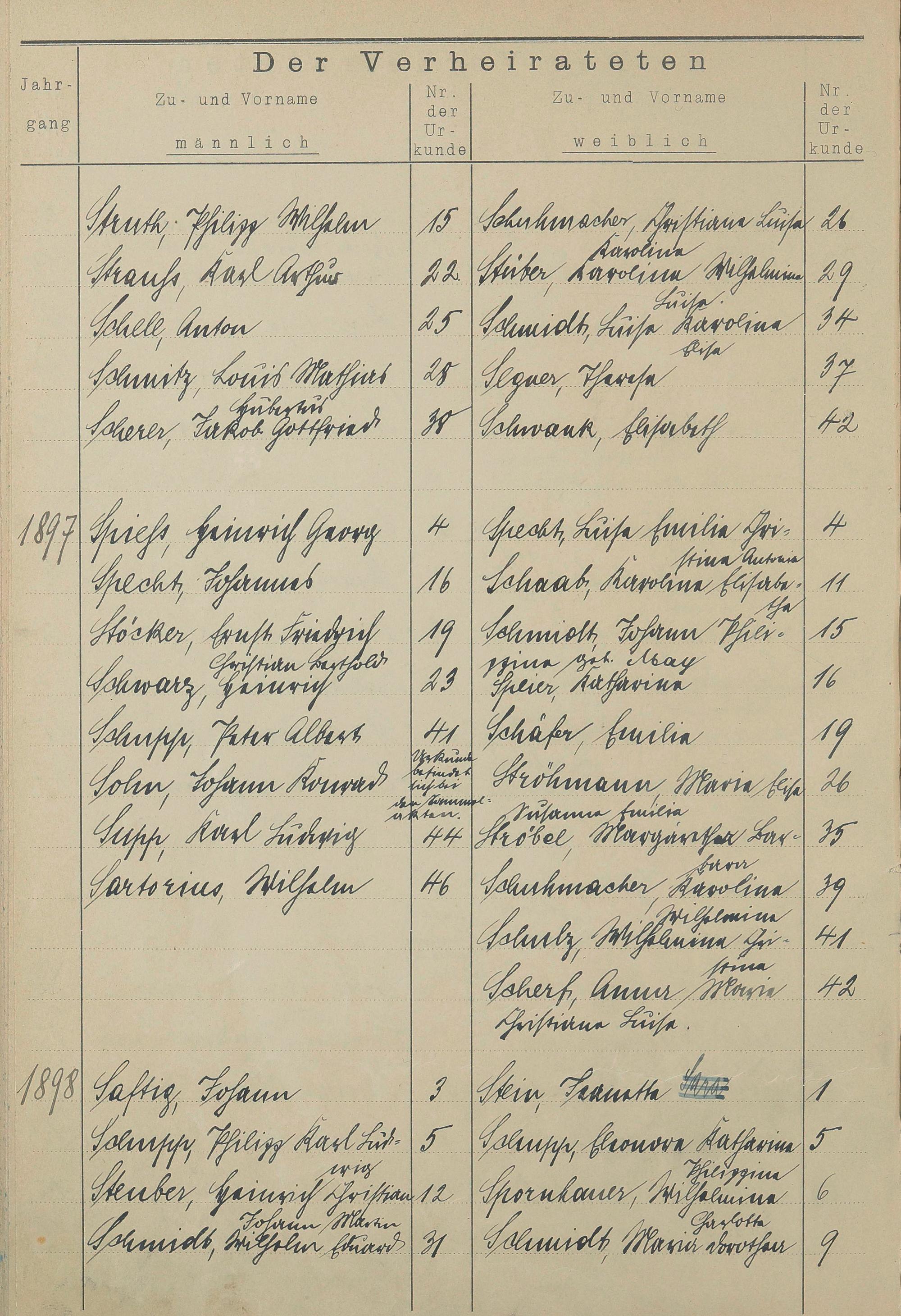 Register A - Z zum Heiratsregister 1874-1900