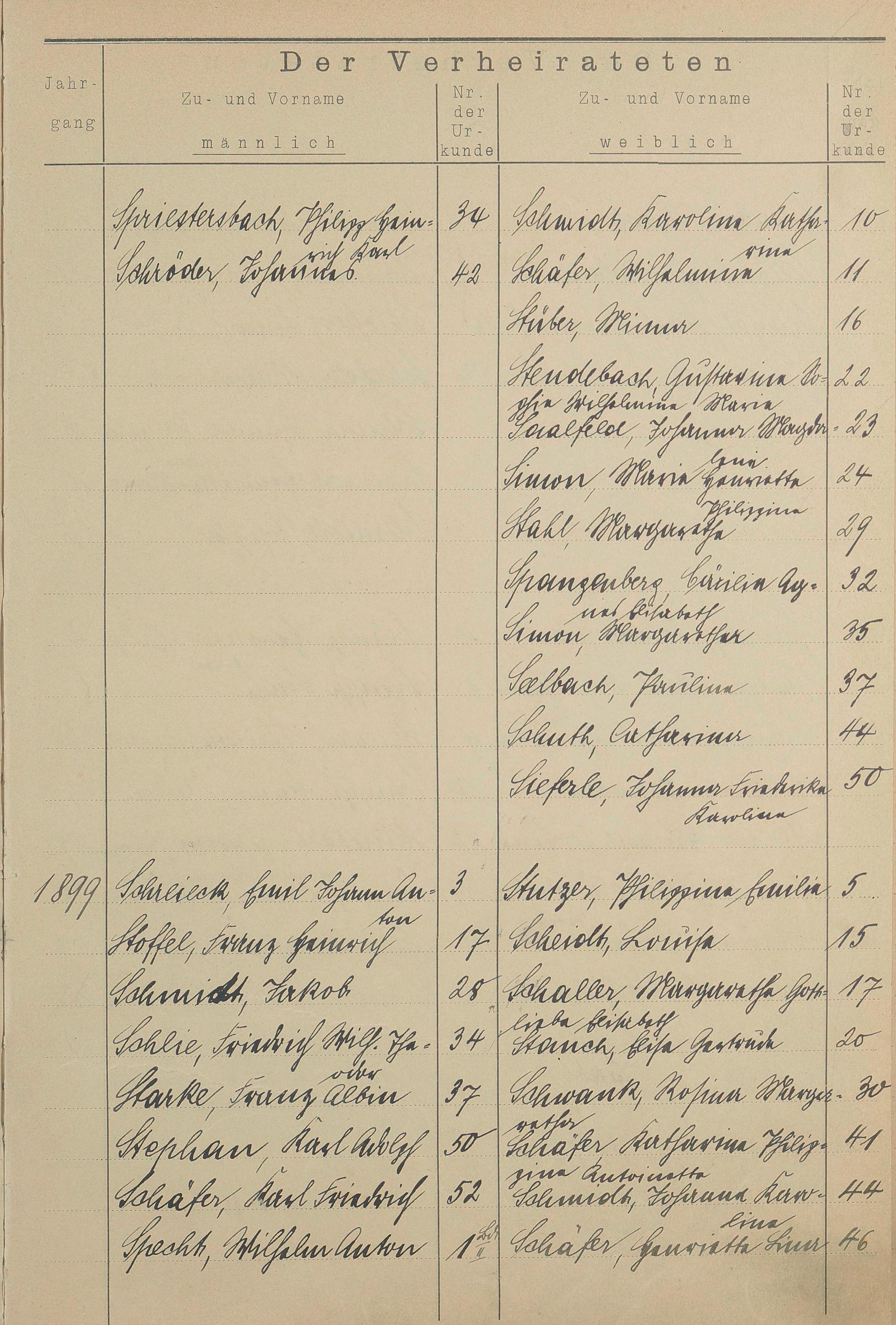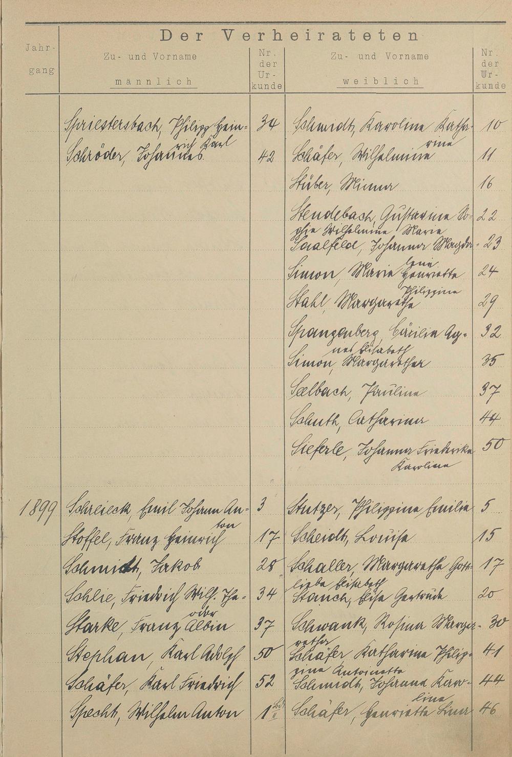 Register A - Z zum Heiratsregister 1874-1900