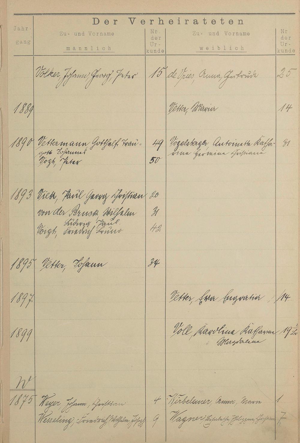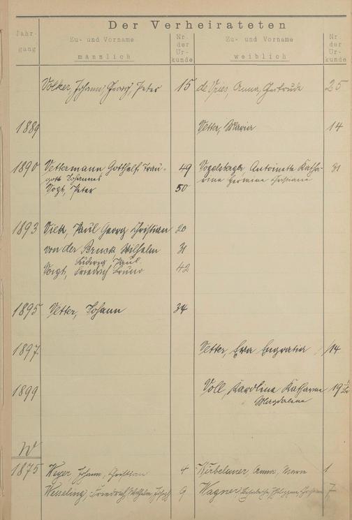 Register A - Z zum Heiratsregister 1874-1900
