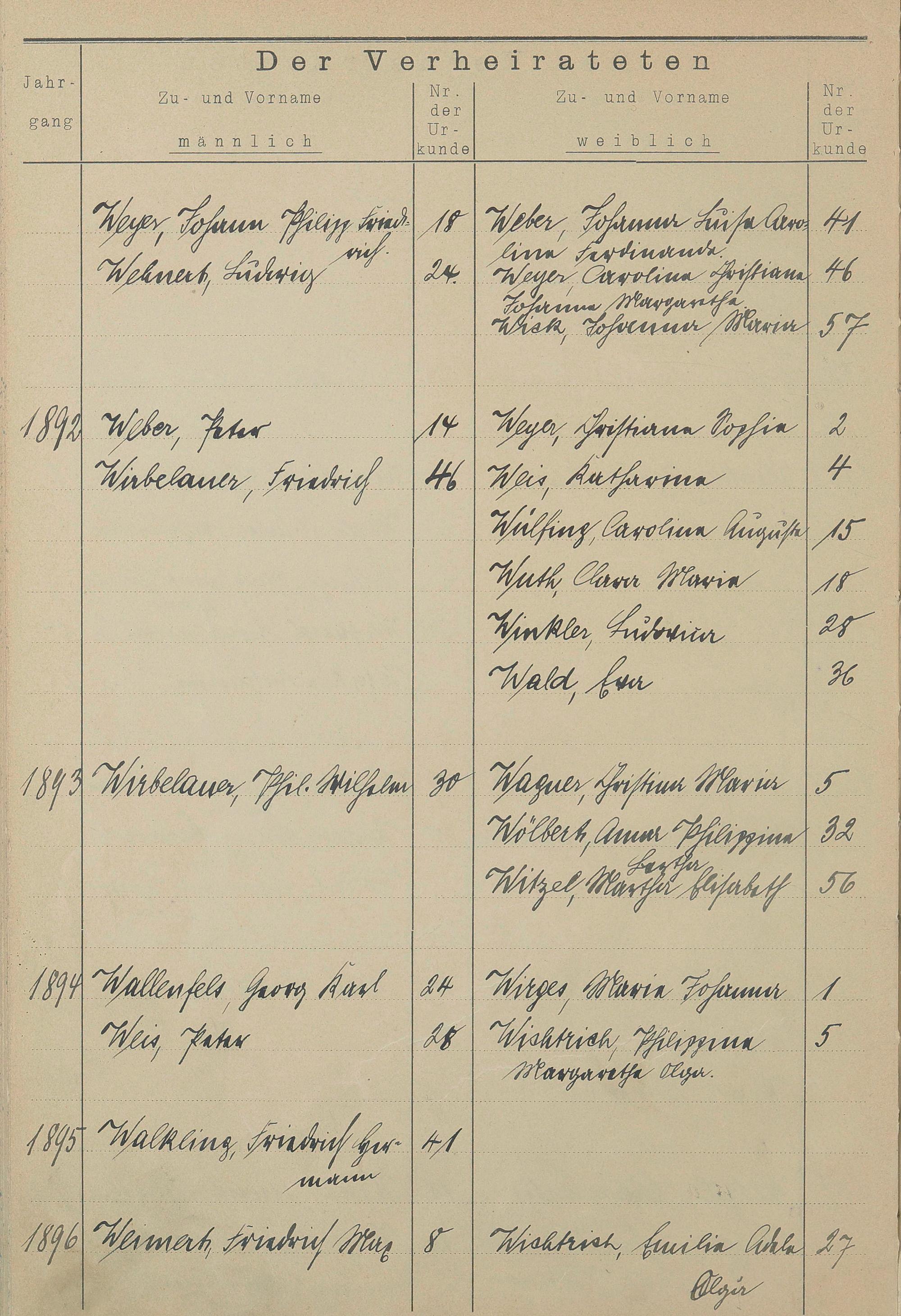 1559: Register A - Z zum Heiratsregister 1874-1900