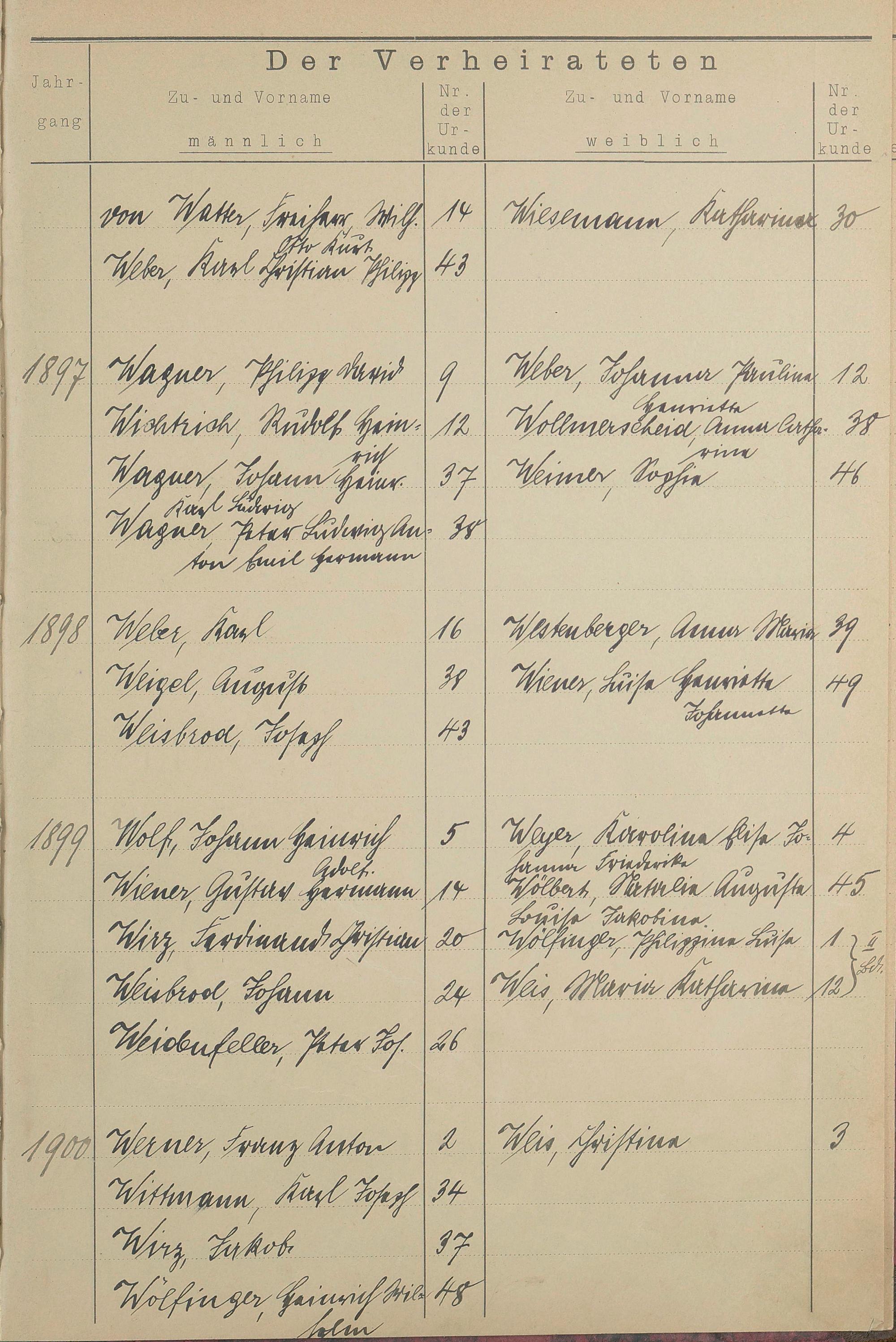 1559: Register A - Z zum Heiratsregister 1874-1900