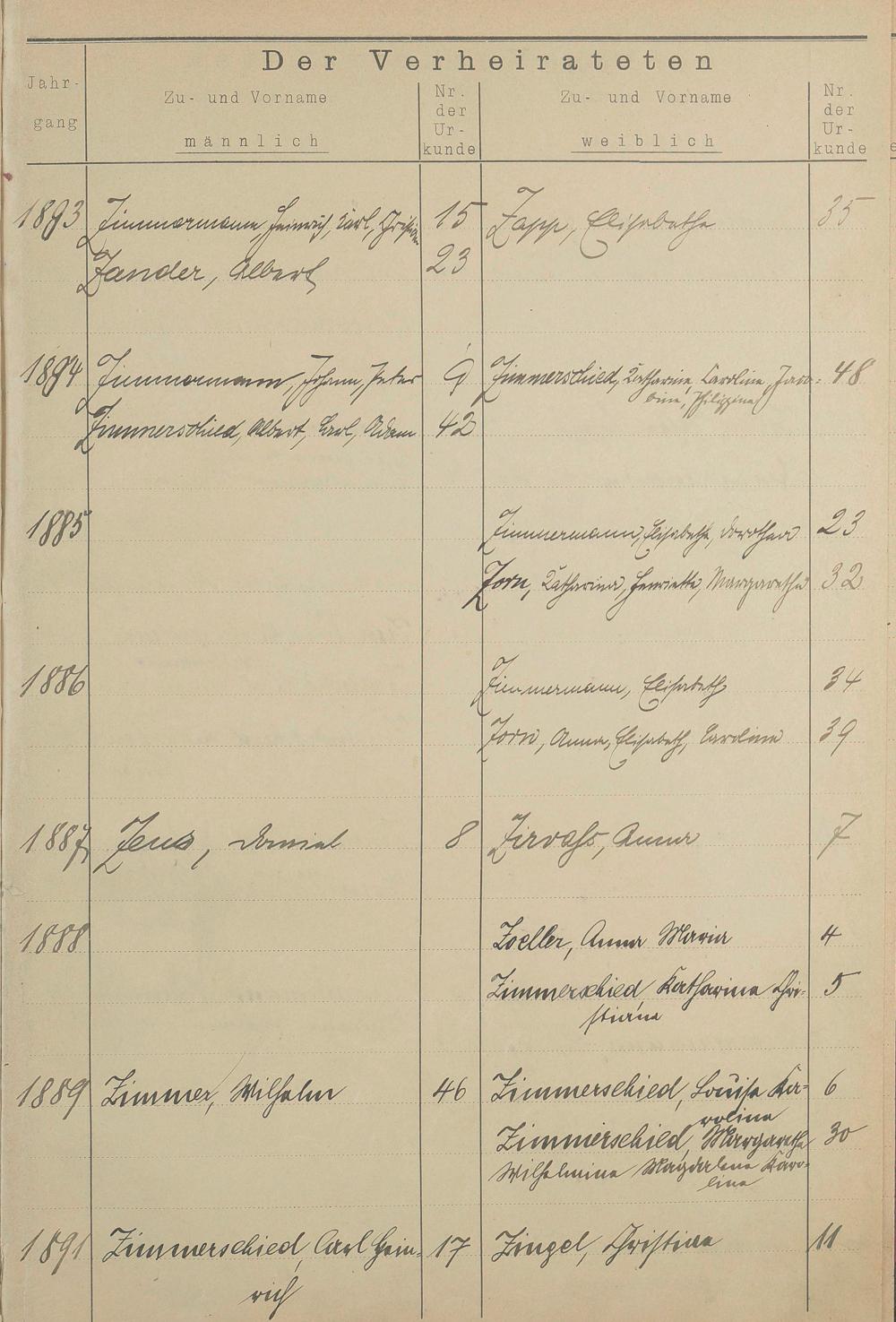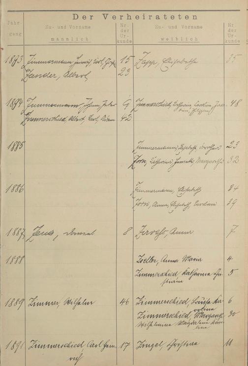 Register A - Z zum Heiratsregister 1874-1900