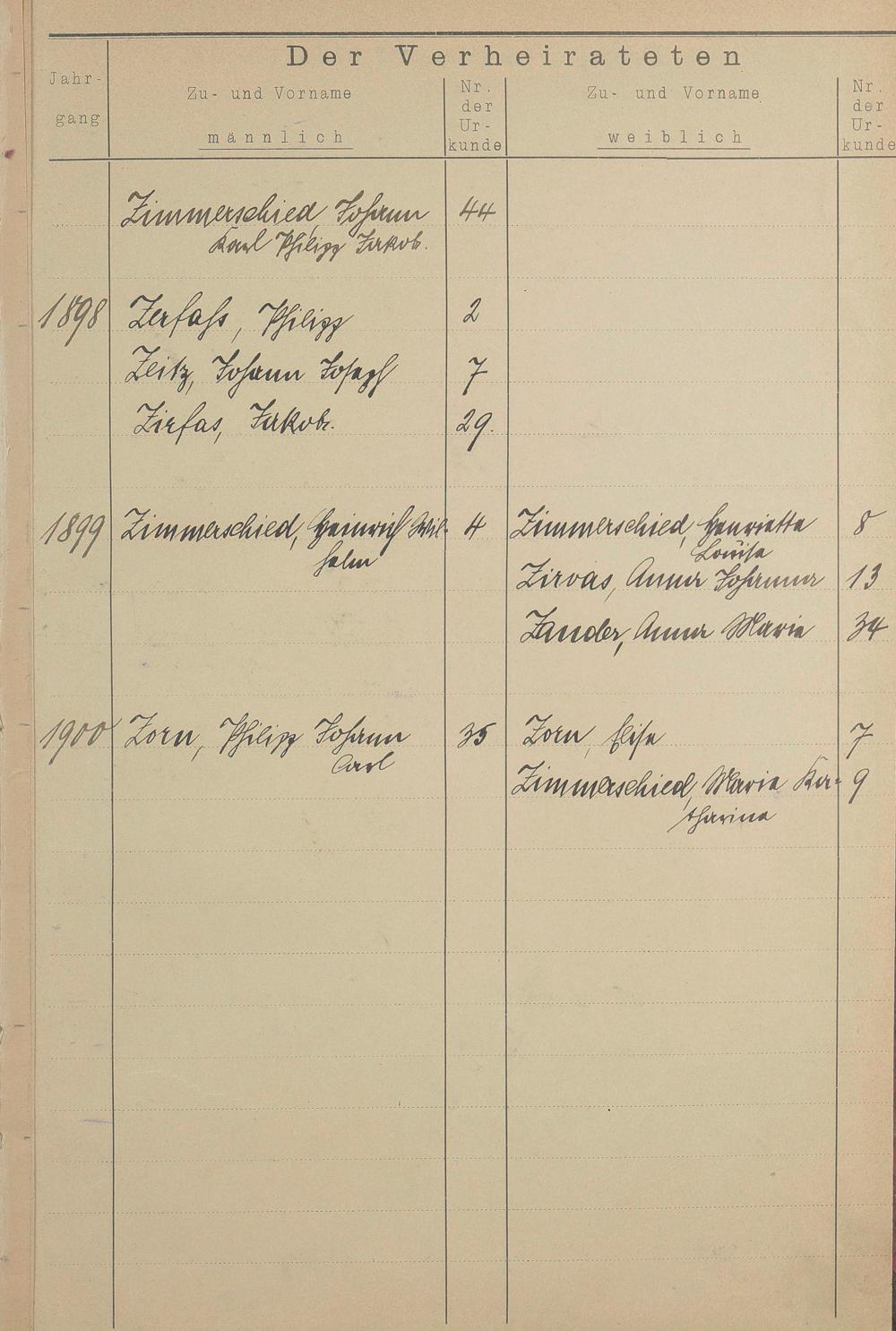 1559: Register A - Z zum Heiratsregister 1874-1900