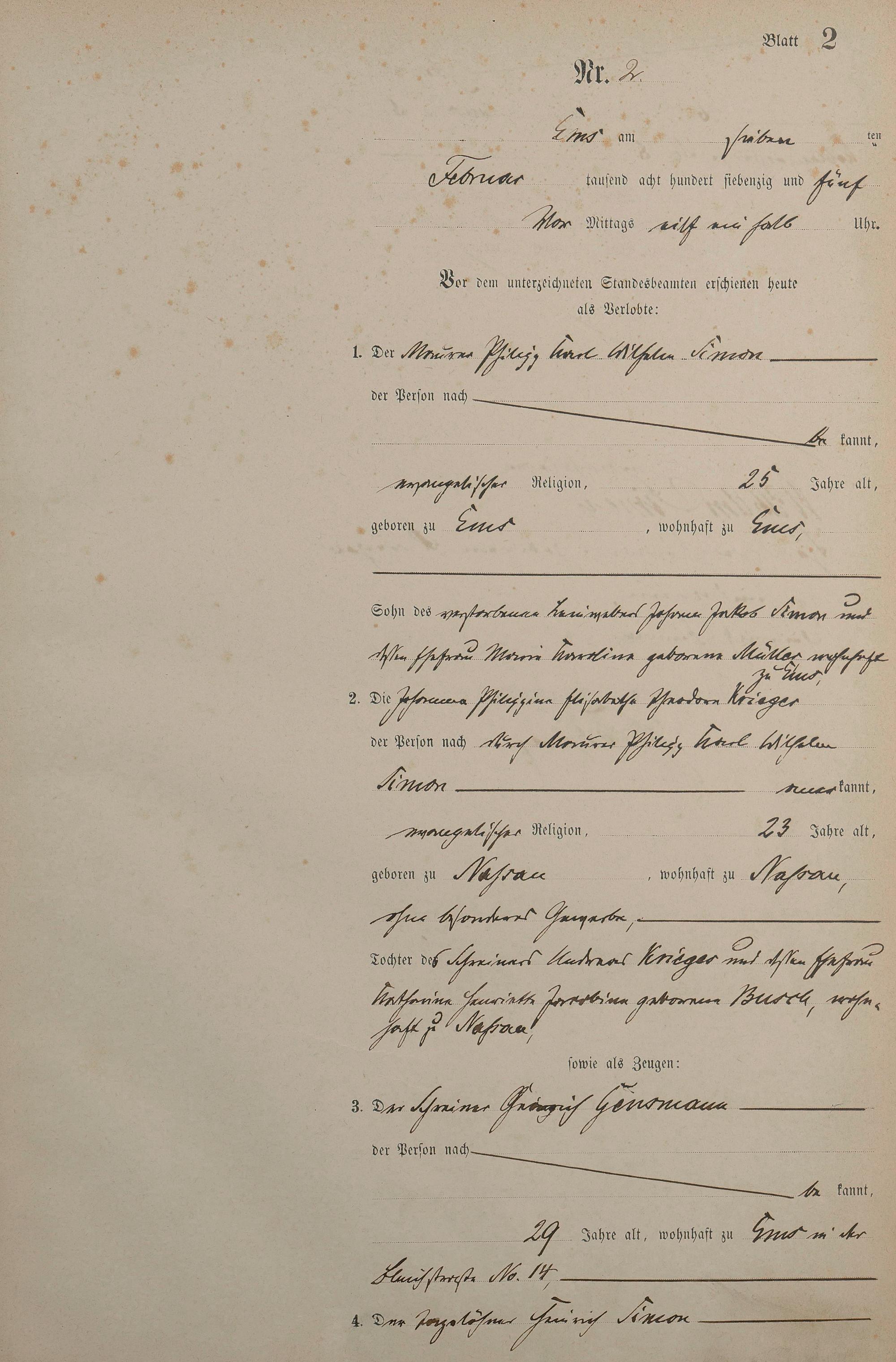 Heiratsregister 1875