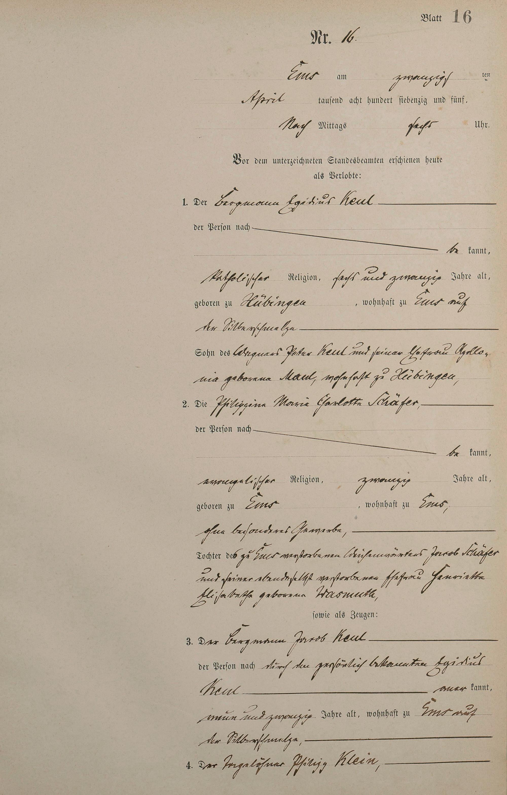 Heiratsregister 1875