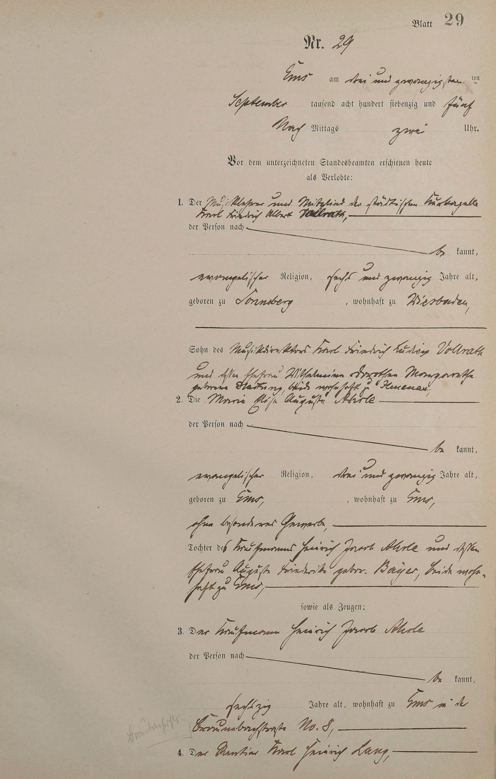 Heiratsregister 1875