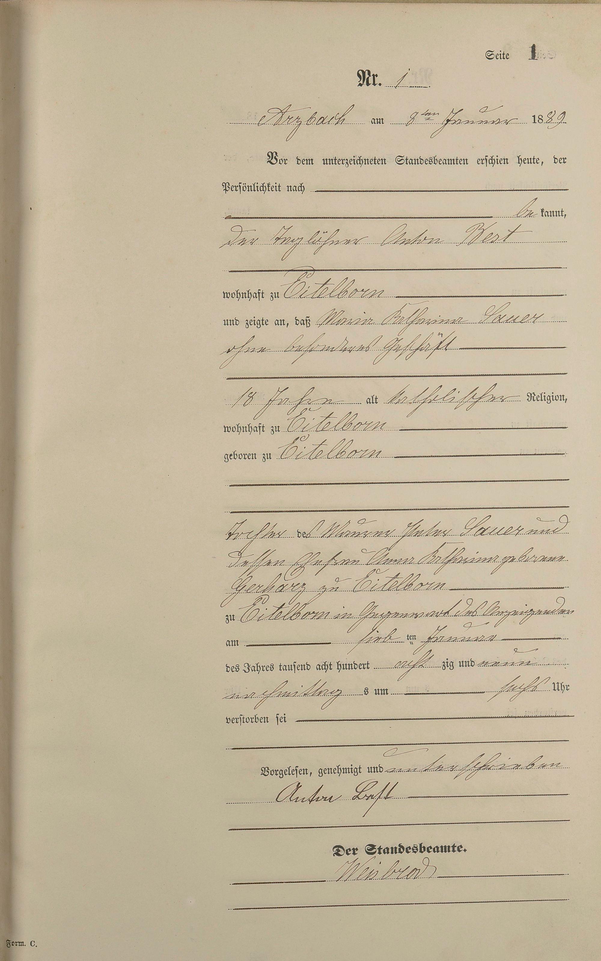 Sterberegister 1889