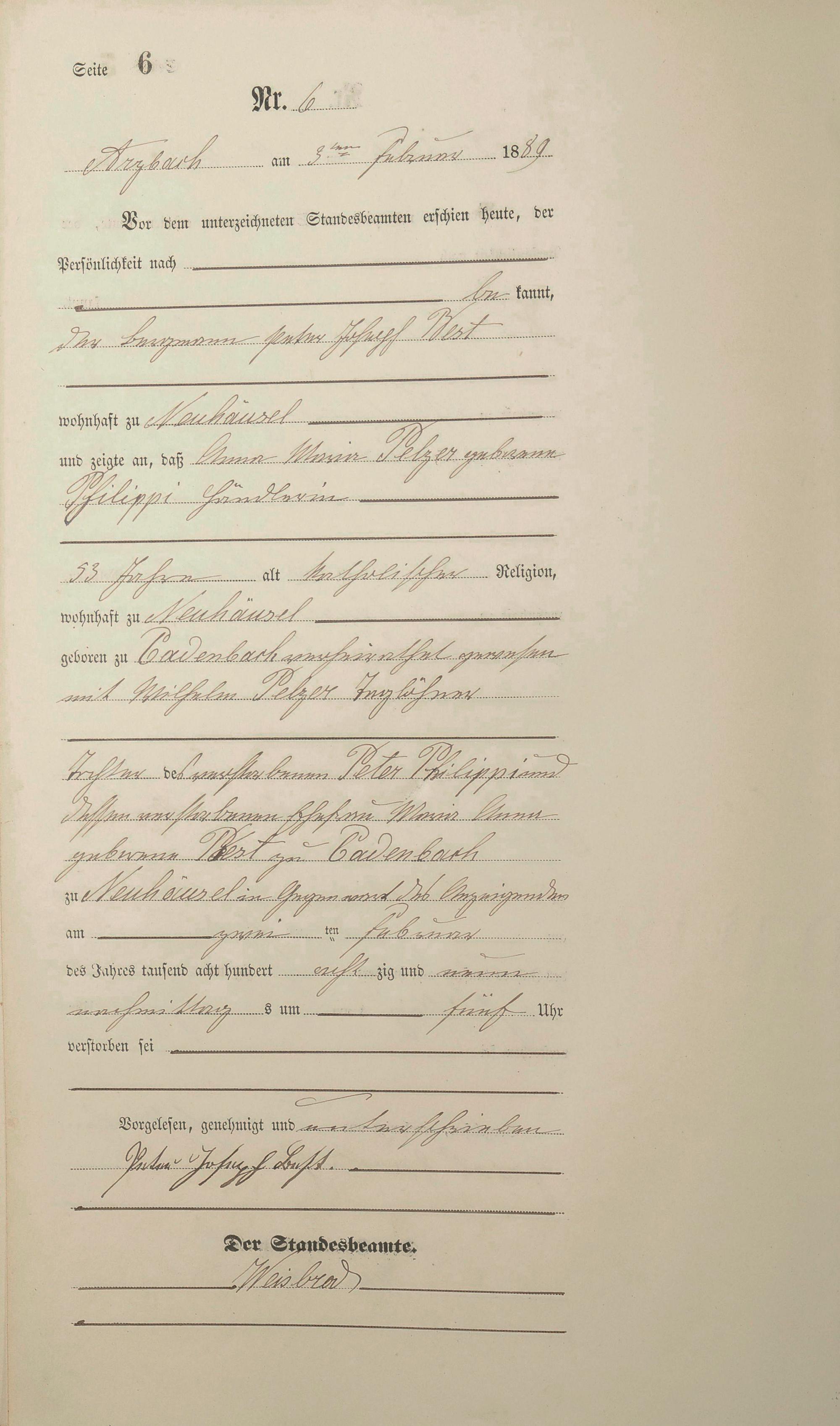 Sterberegister 1889