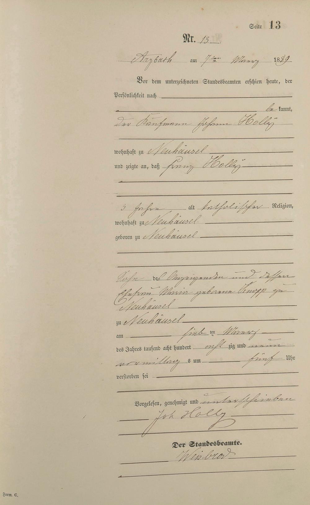 162/4: Sterberegister 1889