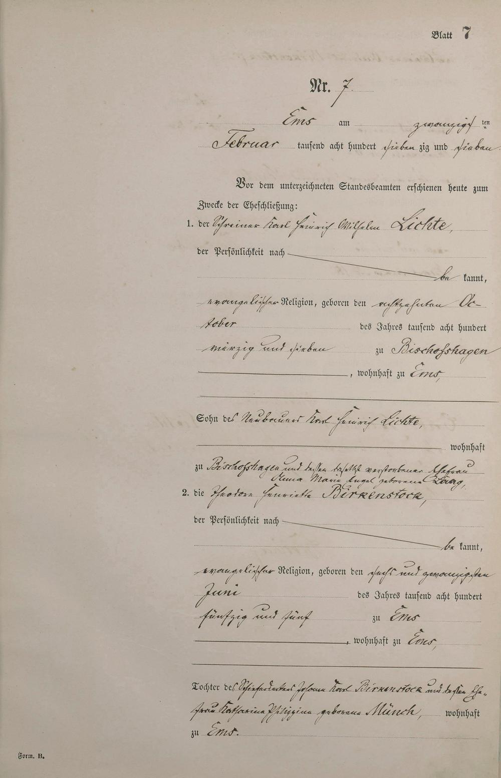 Heiratsregister 1877