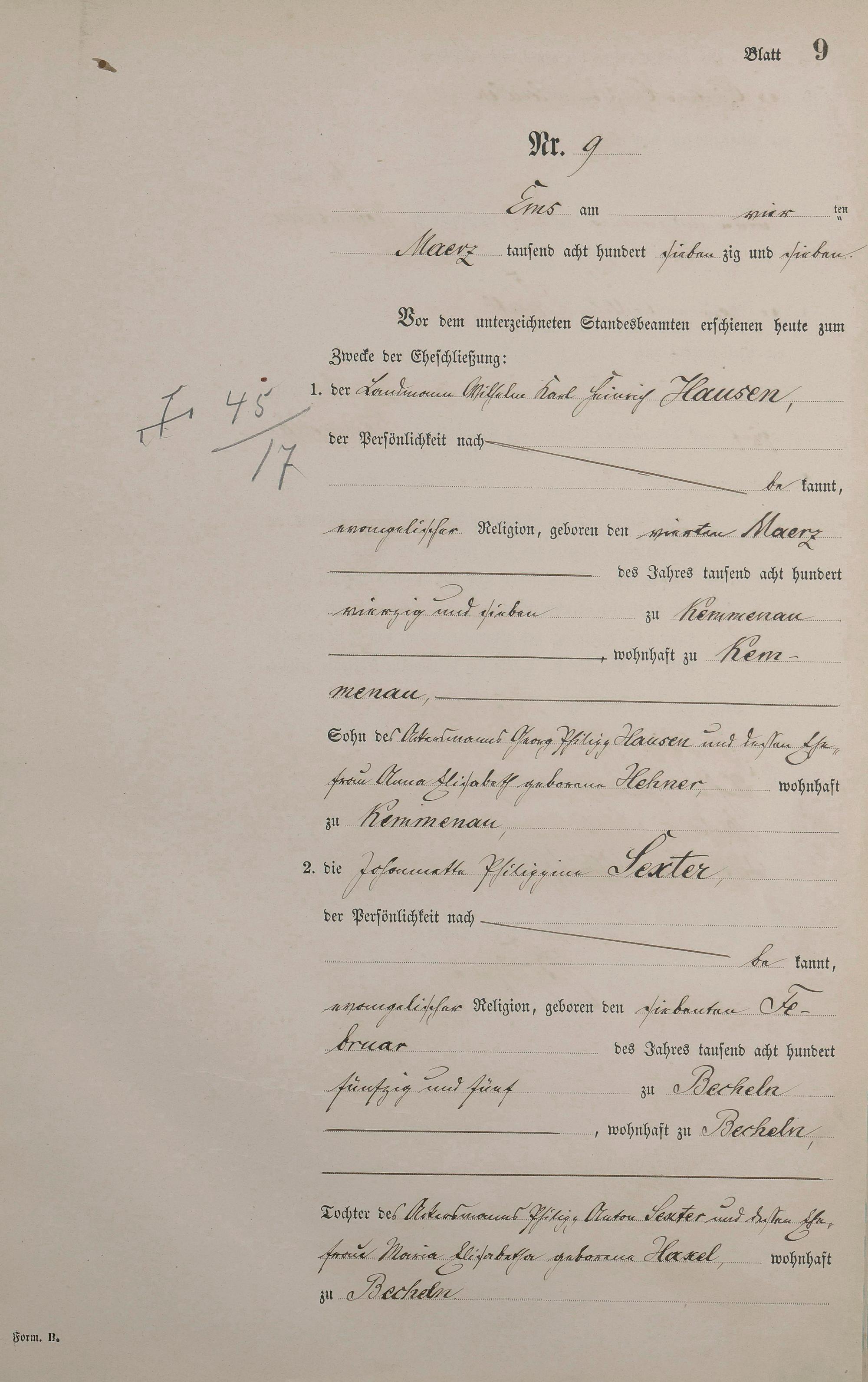 Heiratsregister 1877