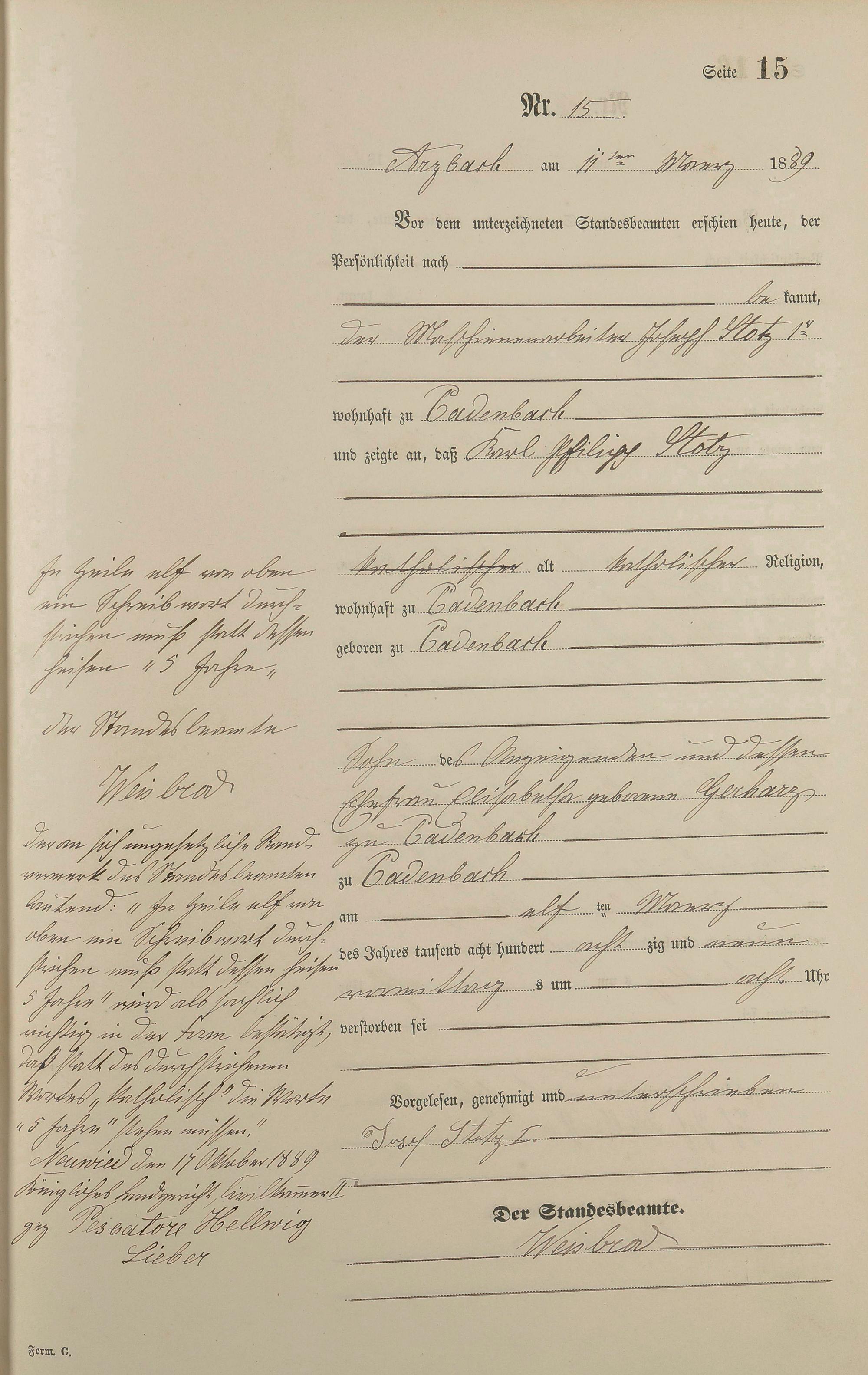 162/4: Sterberegister 1889
