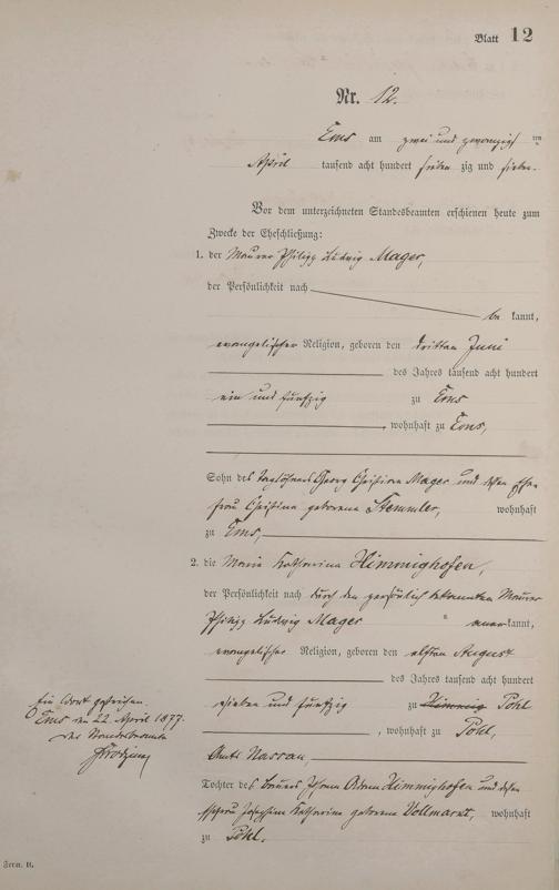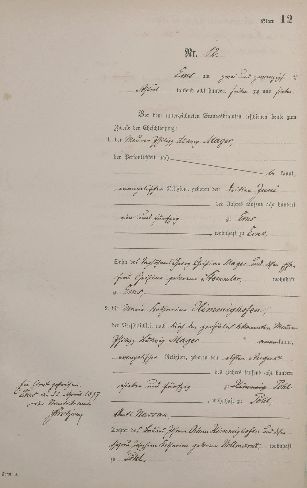 Heiratsregister 1877