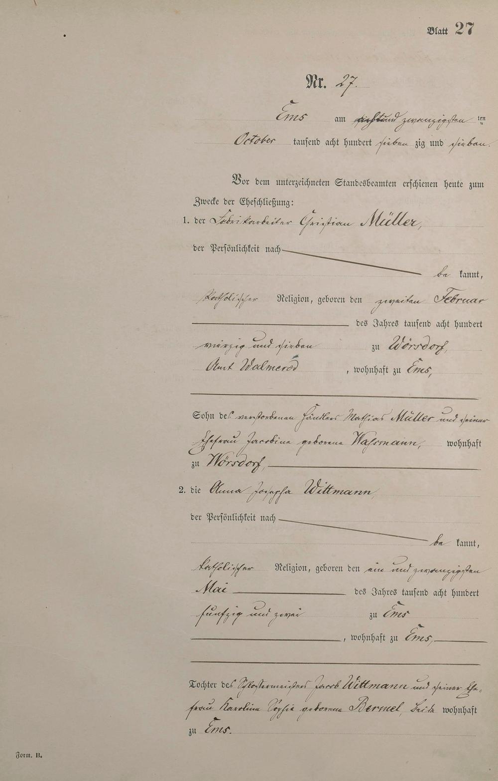 Heiratsregister 1877