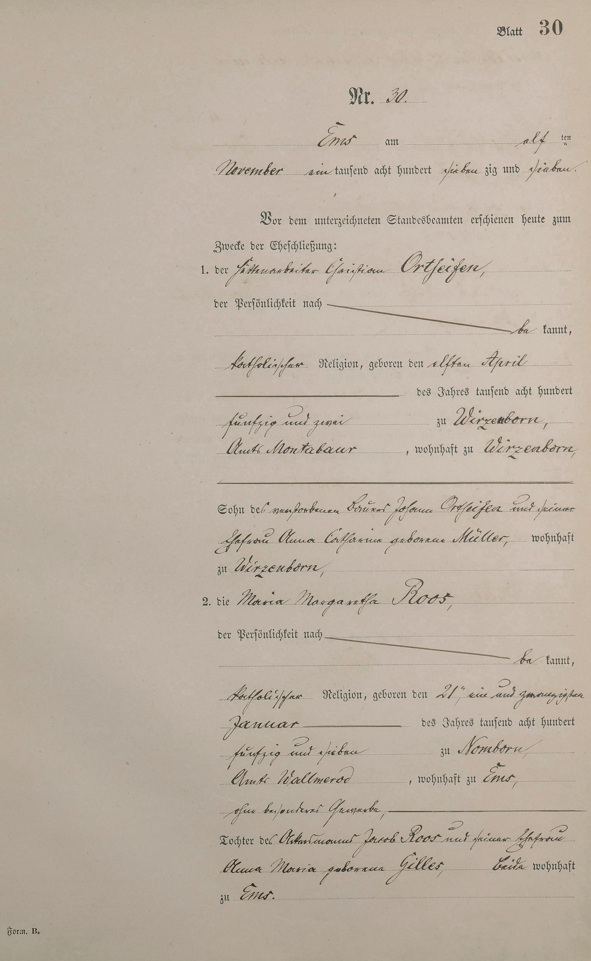 Heiratsregister 1877