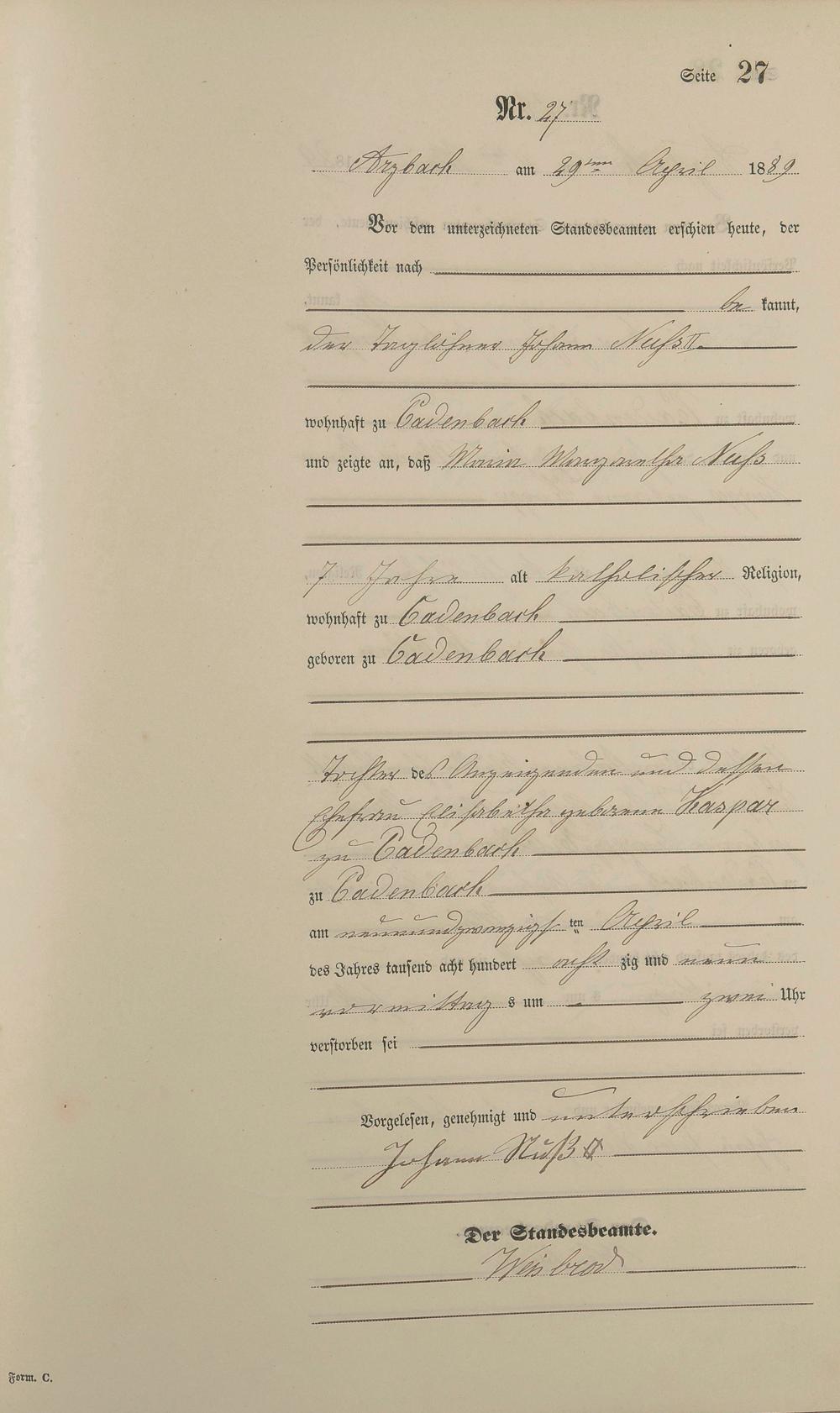 162/4: Sterberegister 1889