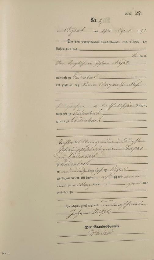 Sterberegister 1889