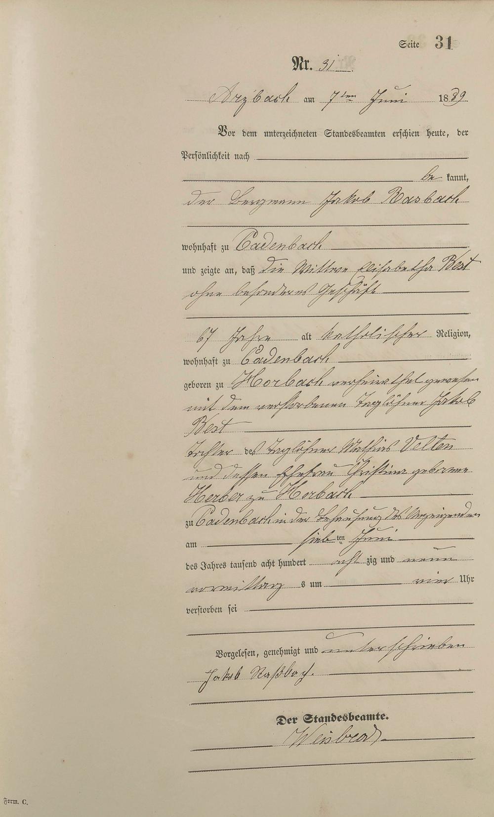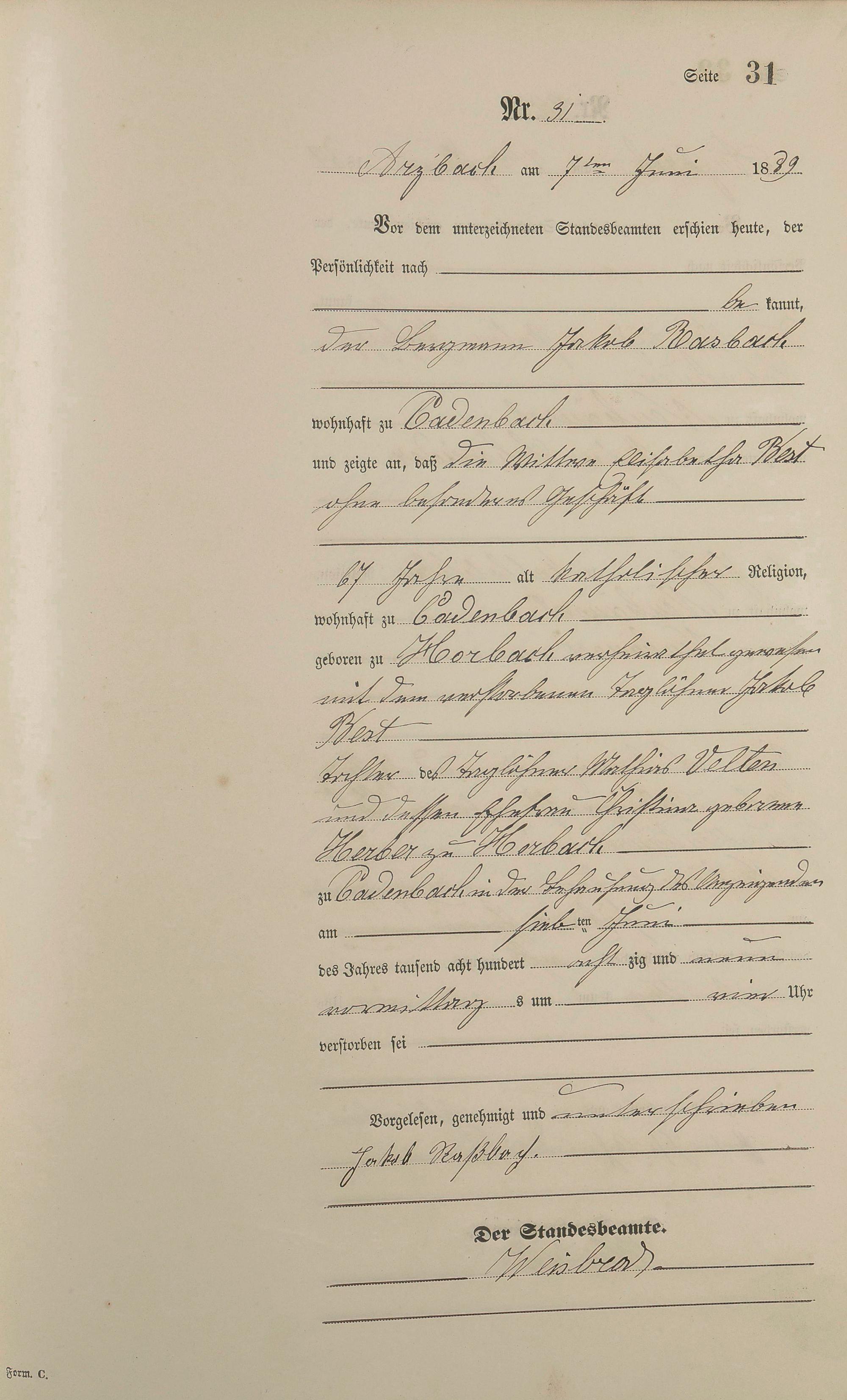 Sterberegister 1889