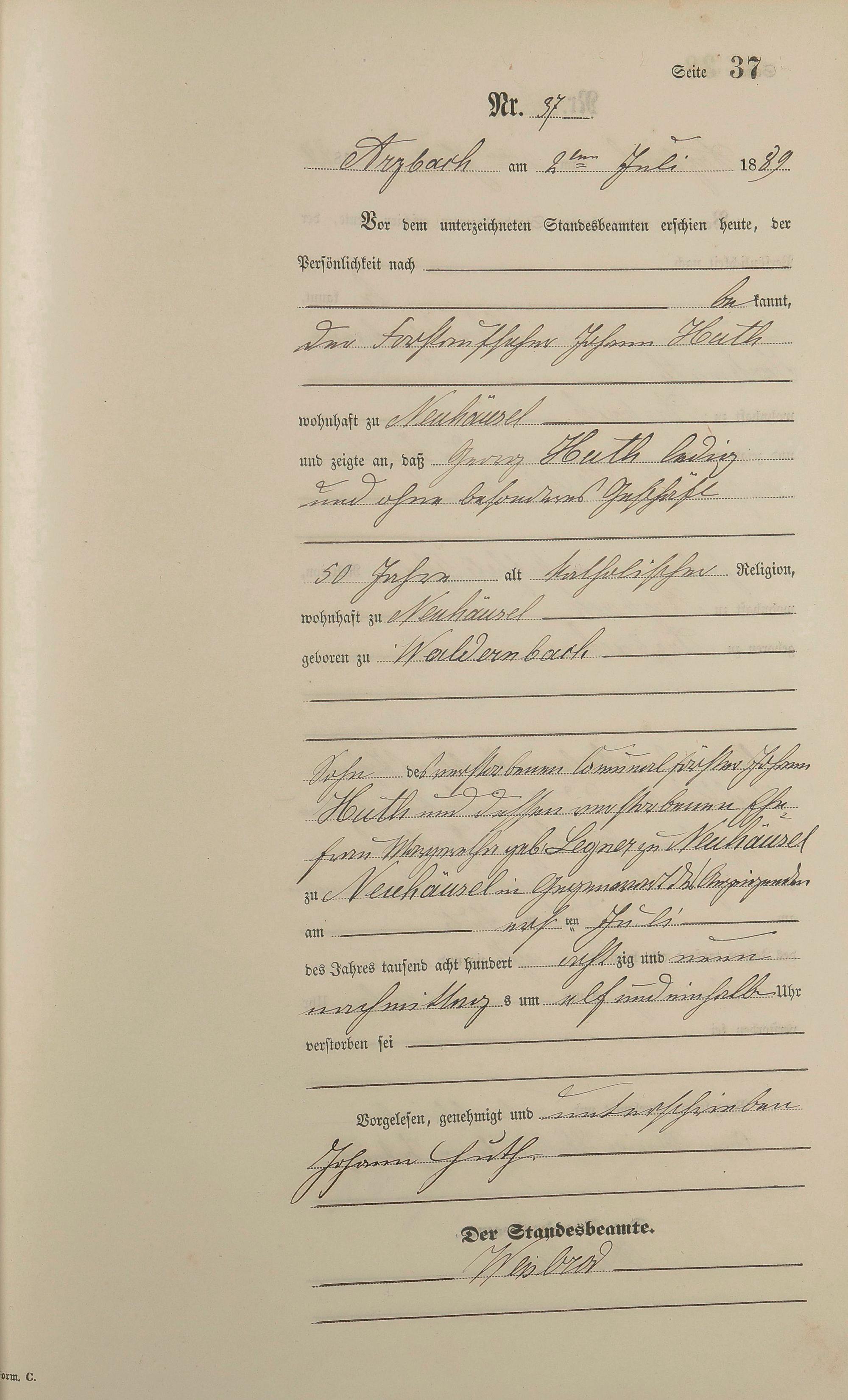 Sterberegister 1889