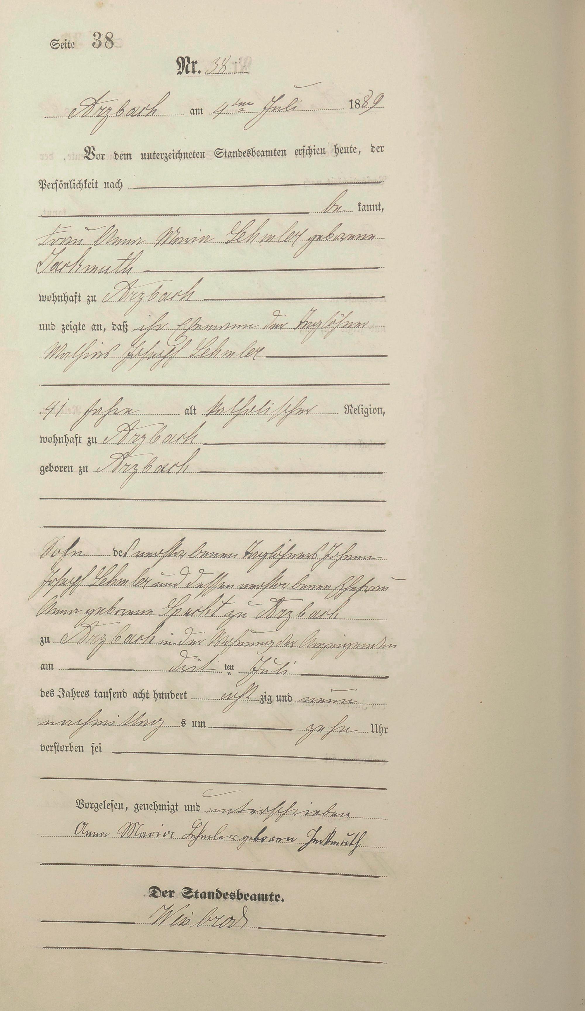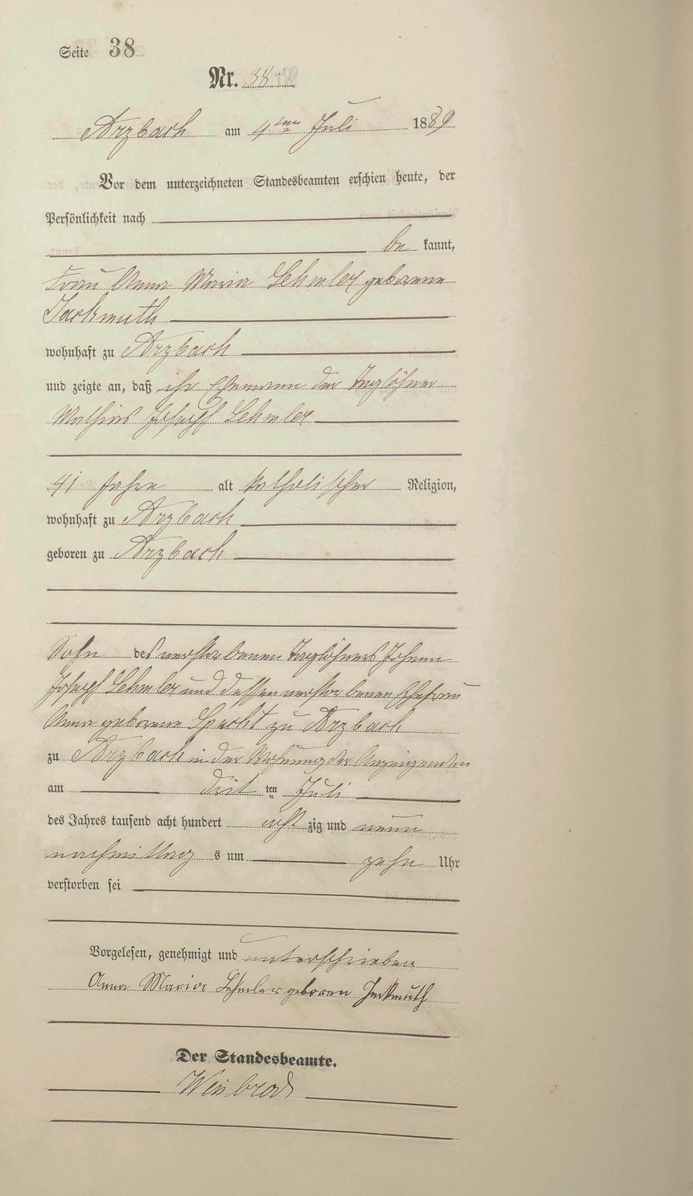 162/4: Sterberegister 1889