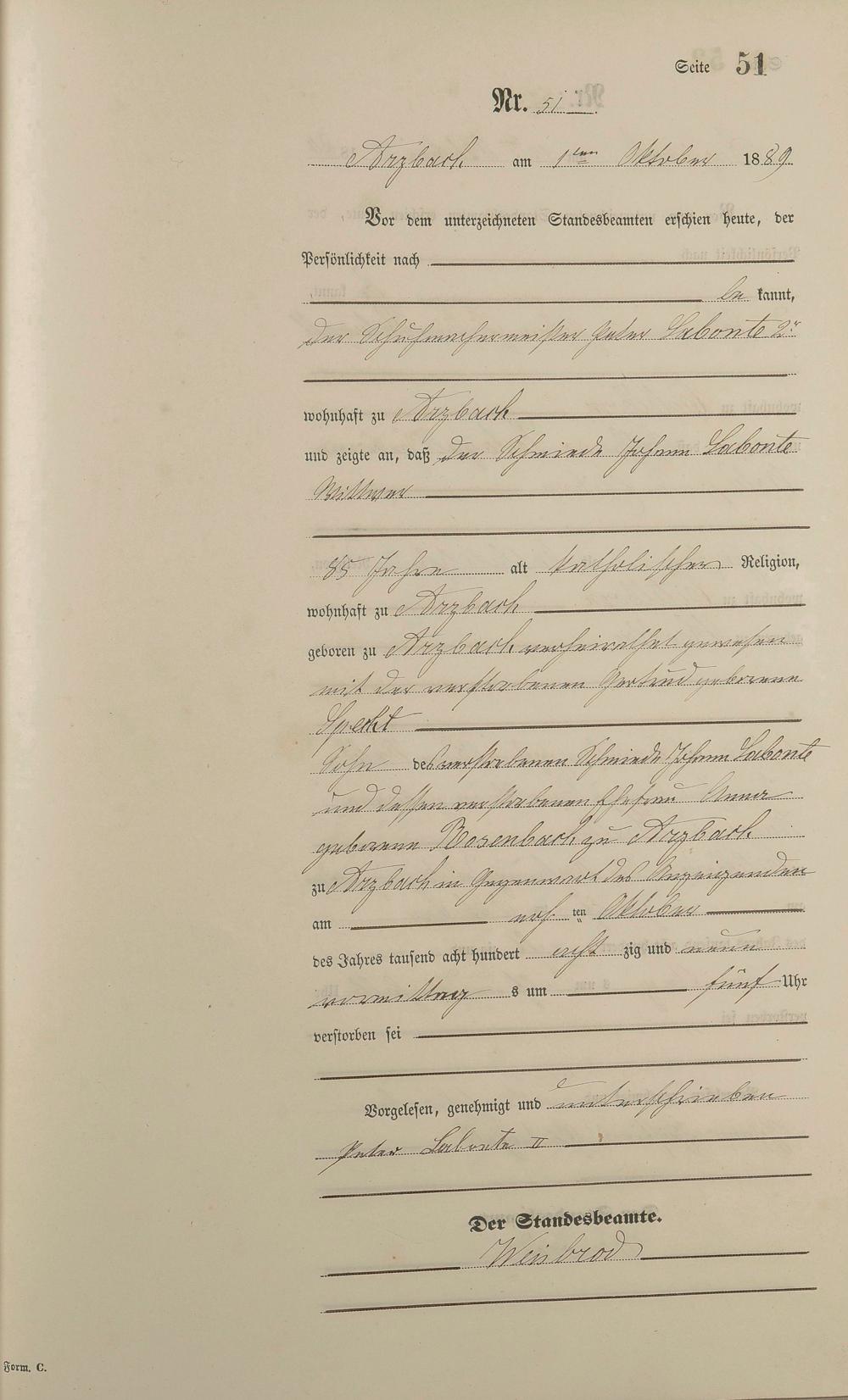 162/4: Sterberegister 1889