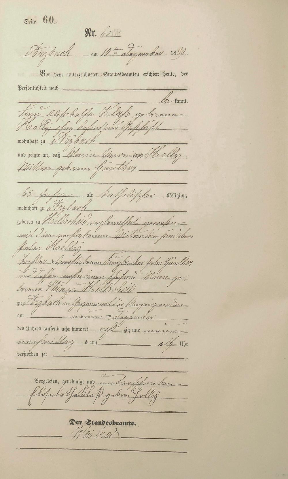 Sterberegister 1889