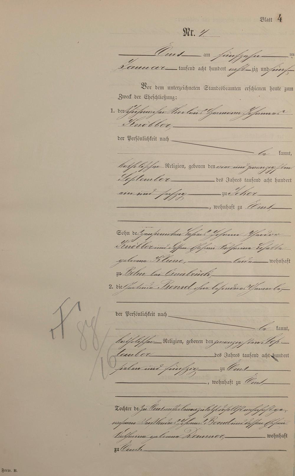 Heiratsregister 1885