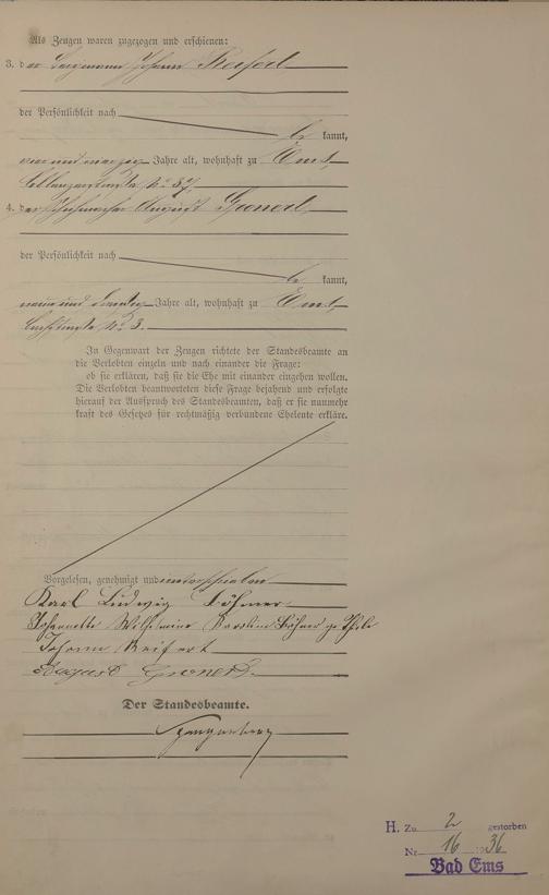 Heiratsregister 1885