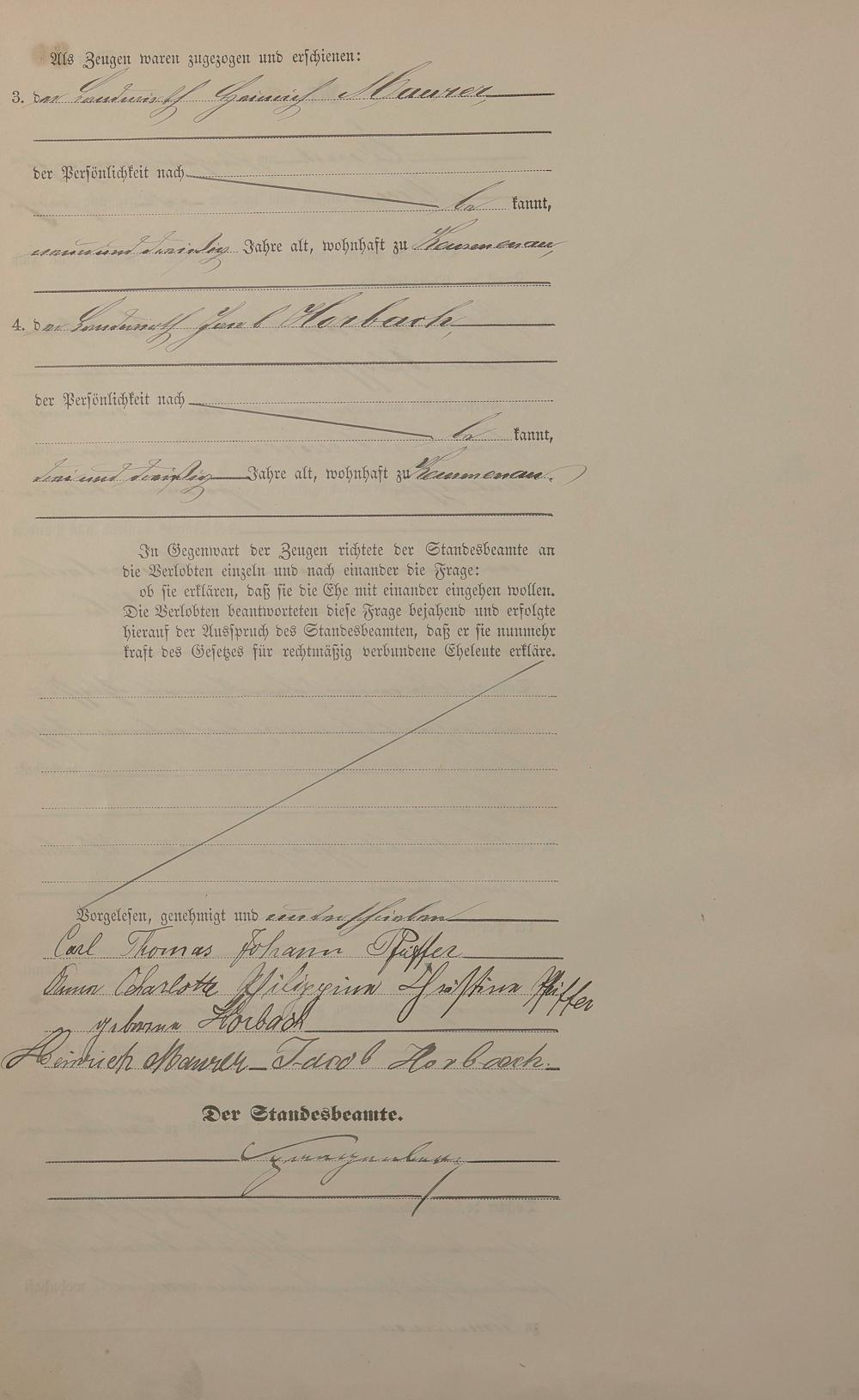 Heiratsregister 1885