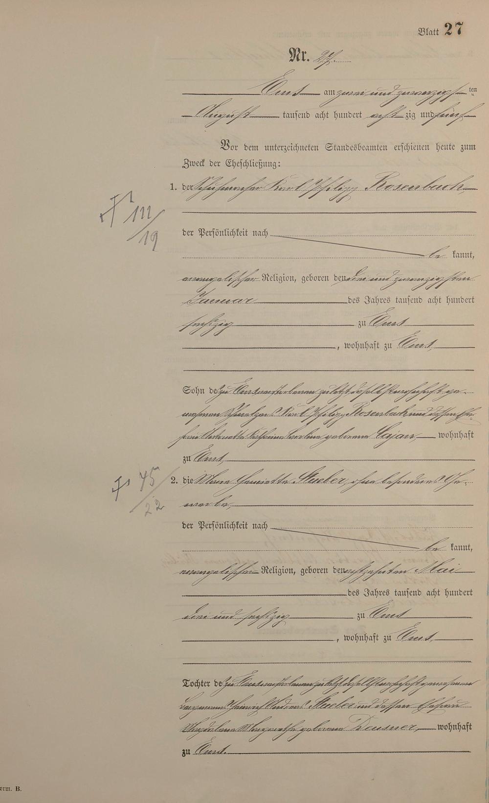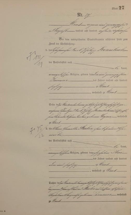 Heiratsregister 1885