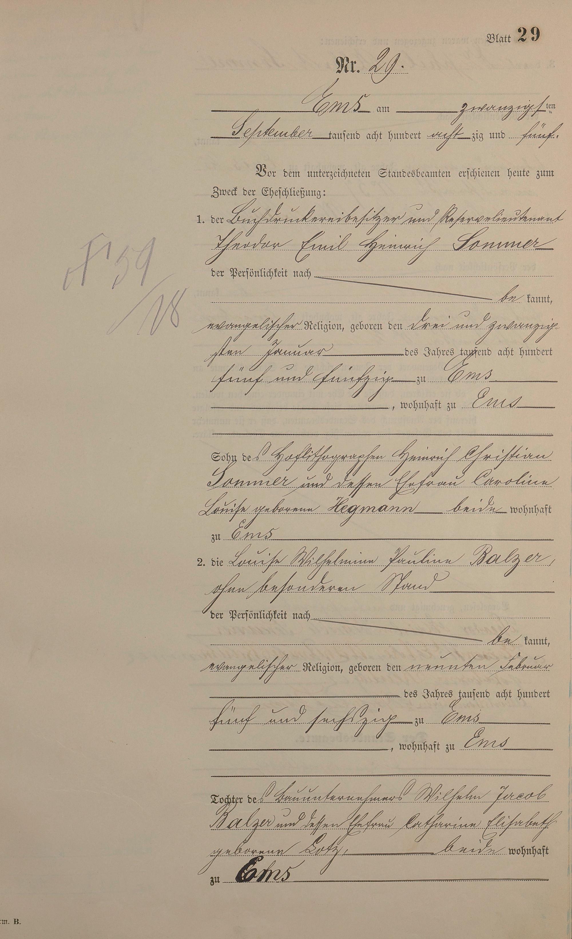 Heiratsregister 1885