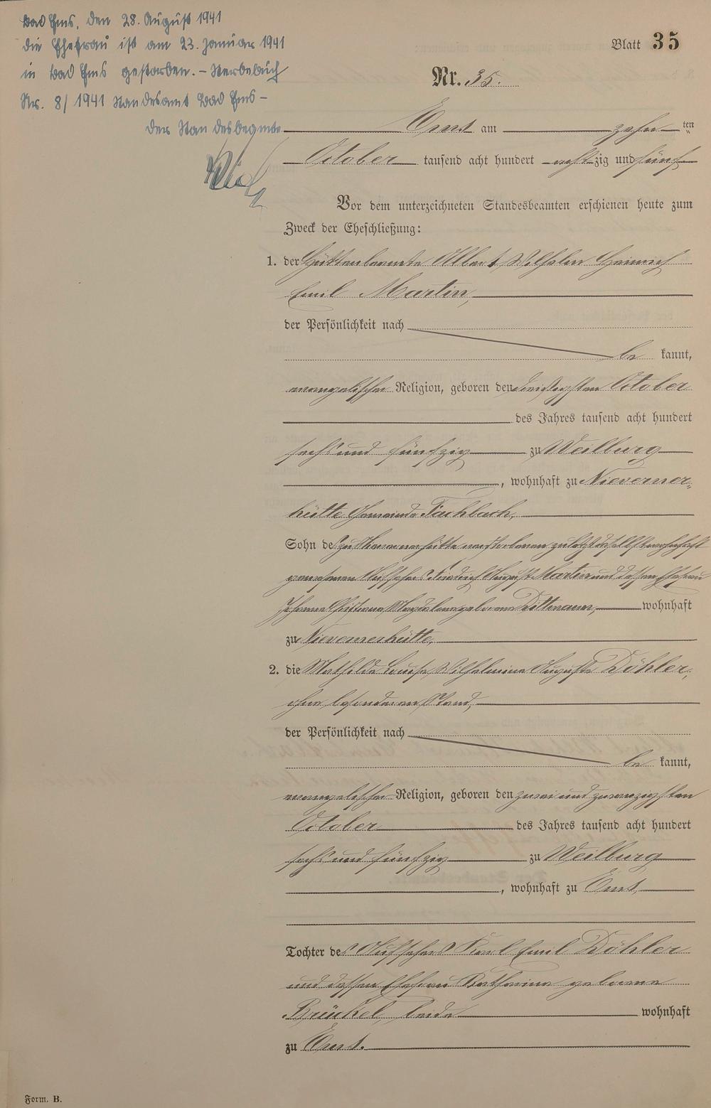 Heiratsregister 1885