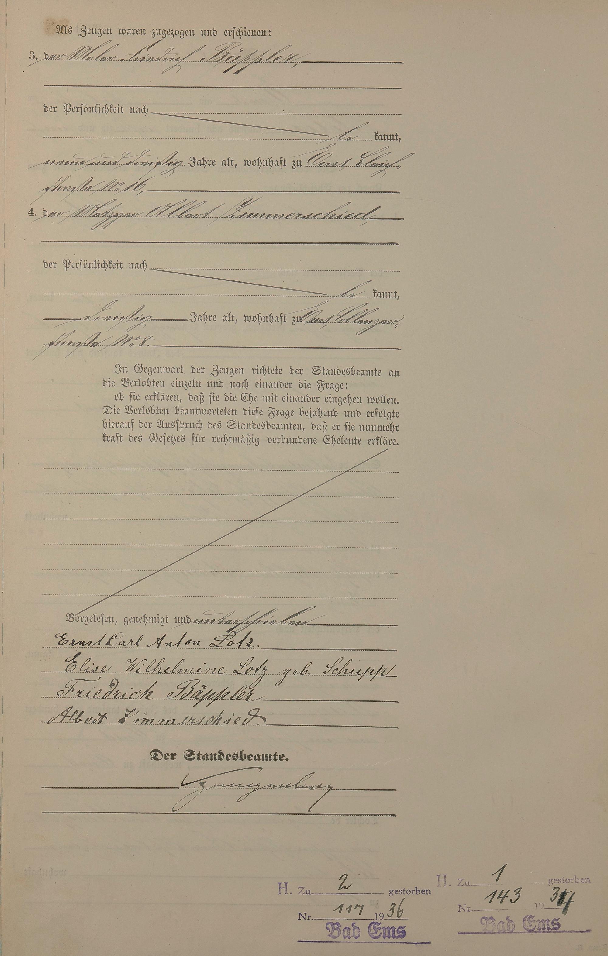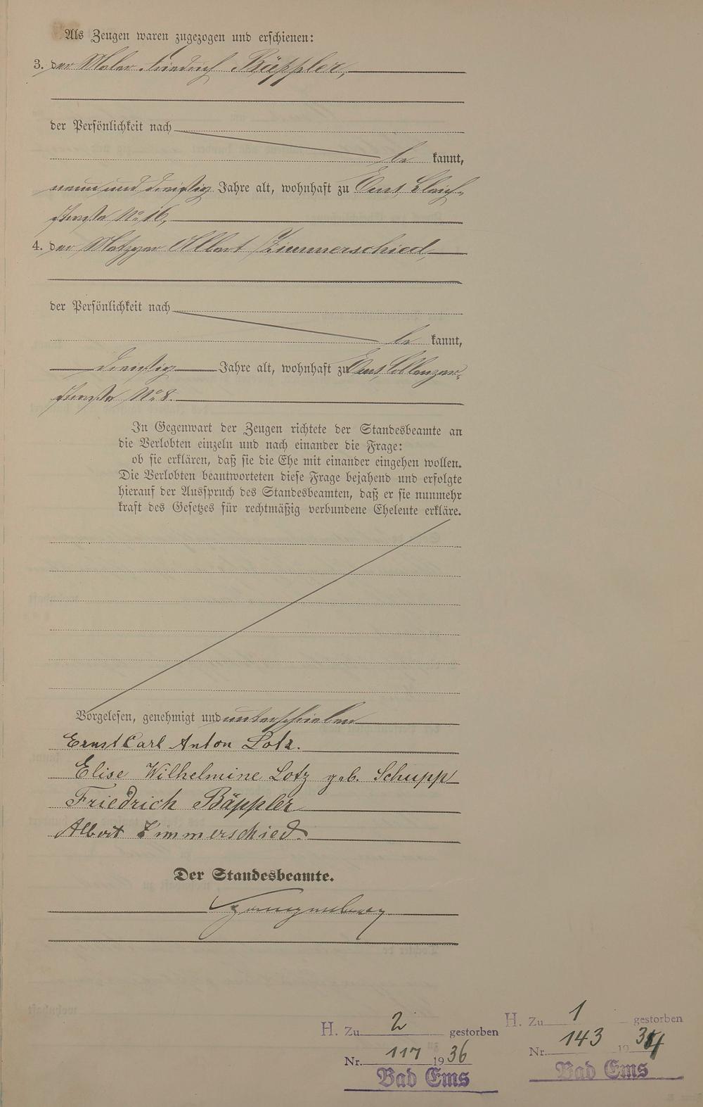 Heiratsregister 1885