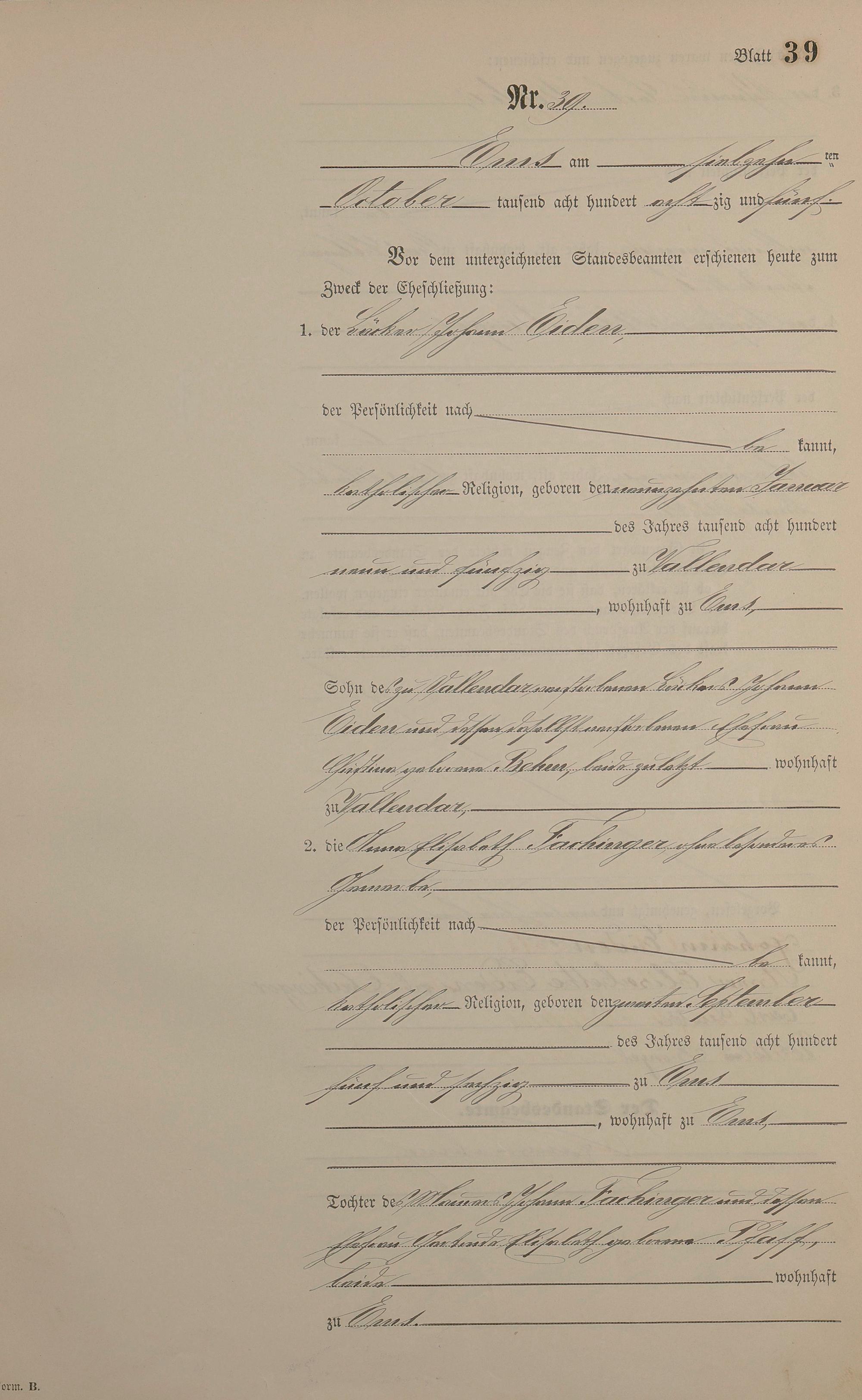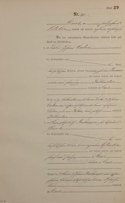 Heiratsregister 1885