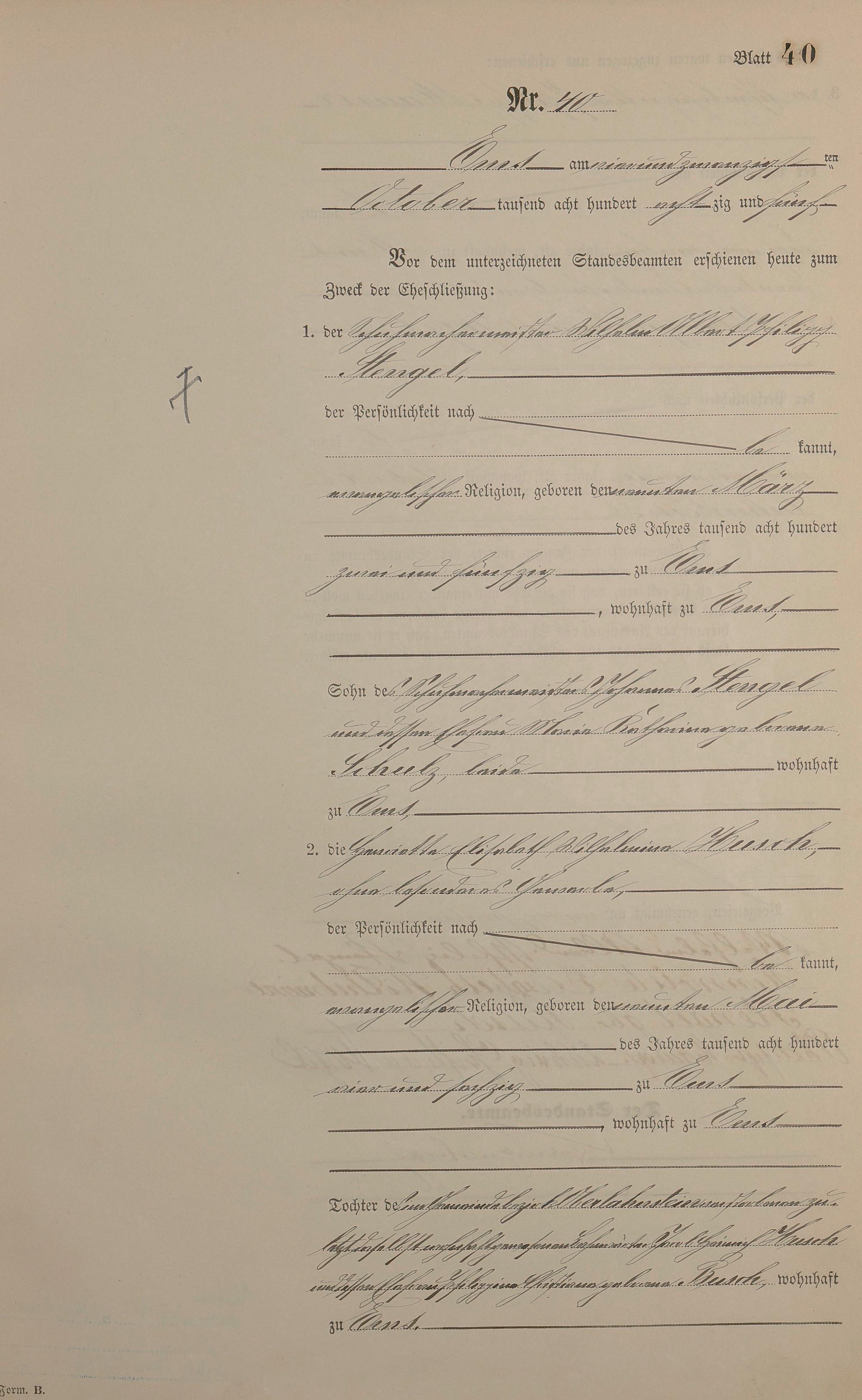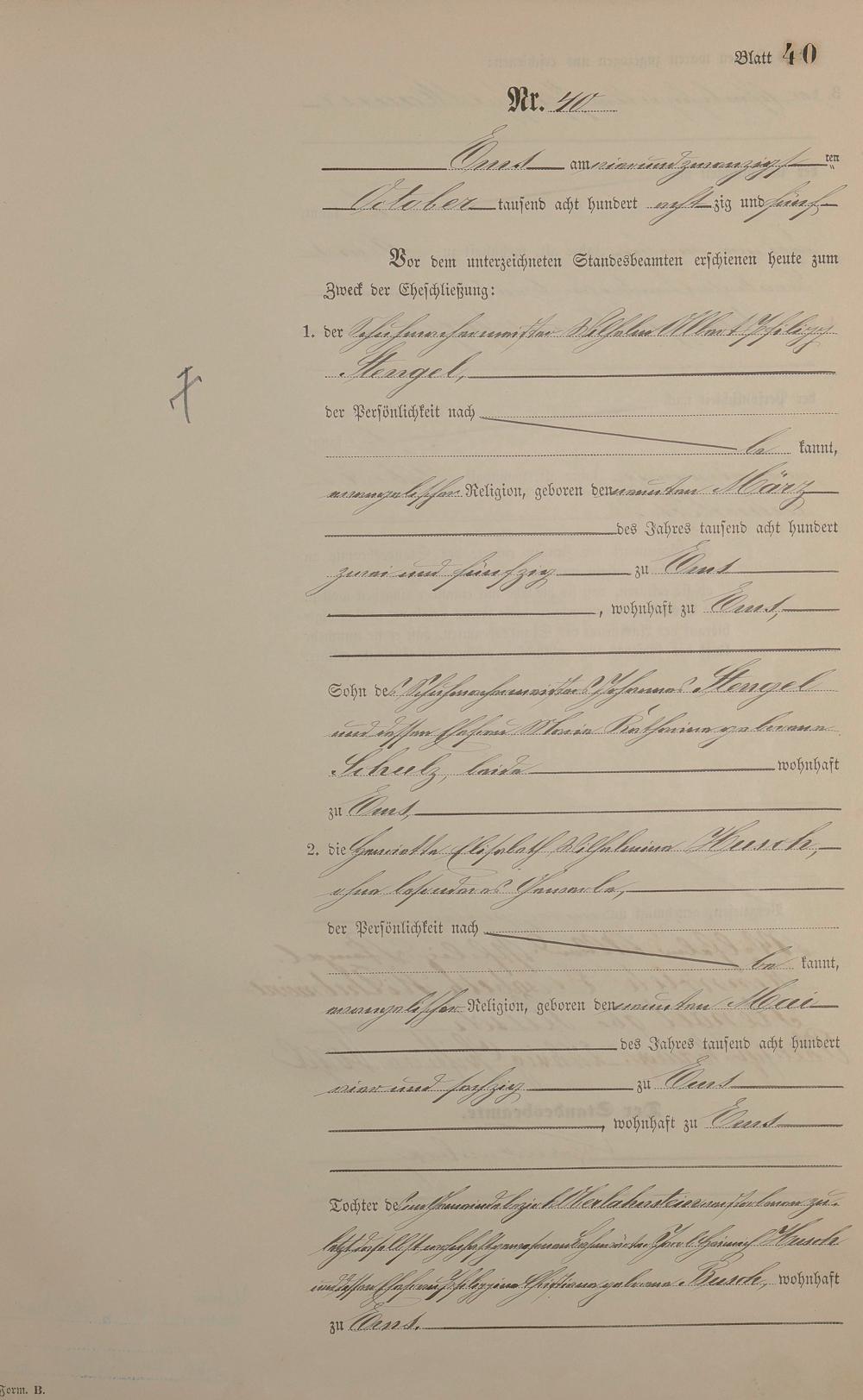 Heiratsregister 1885